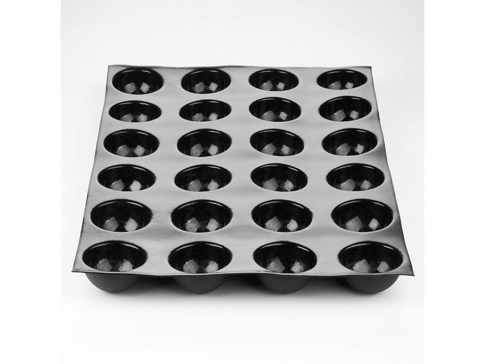 Med 24 identiska fördjupningar säkerställer denna bakform konsekventa resultat varje gång. Det innebär färre misstag och mindre svinn, eftersom alla enheter bakas under samma förhållanden. Den genomtänkta halvkulformen gör det enkelt att vända bakverket ur formen, vilket minimerar risken för skadade slutprodukter och sparar tid i produktionen.