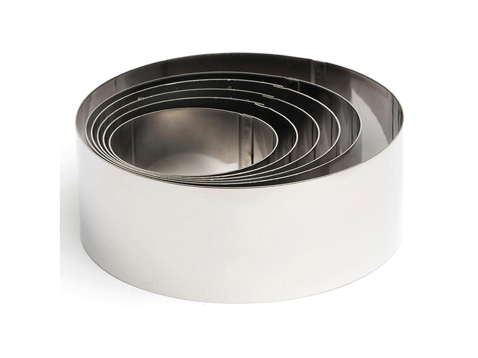 - Sex runda formar i rostfritt stål för precis anrättning