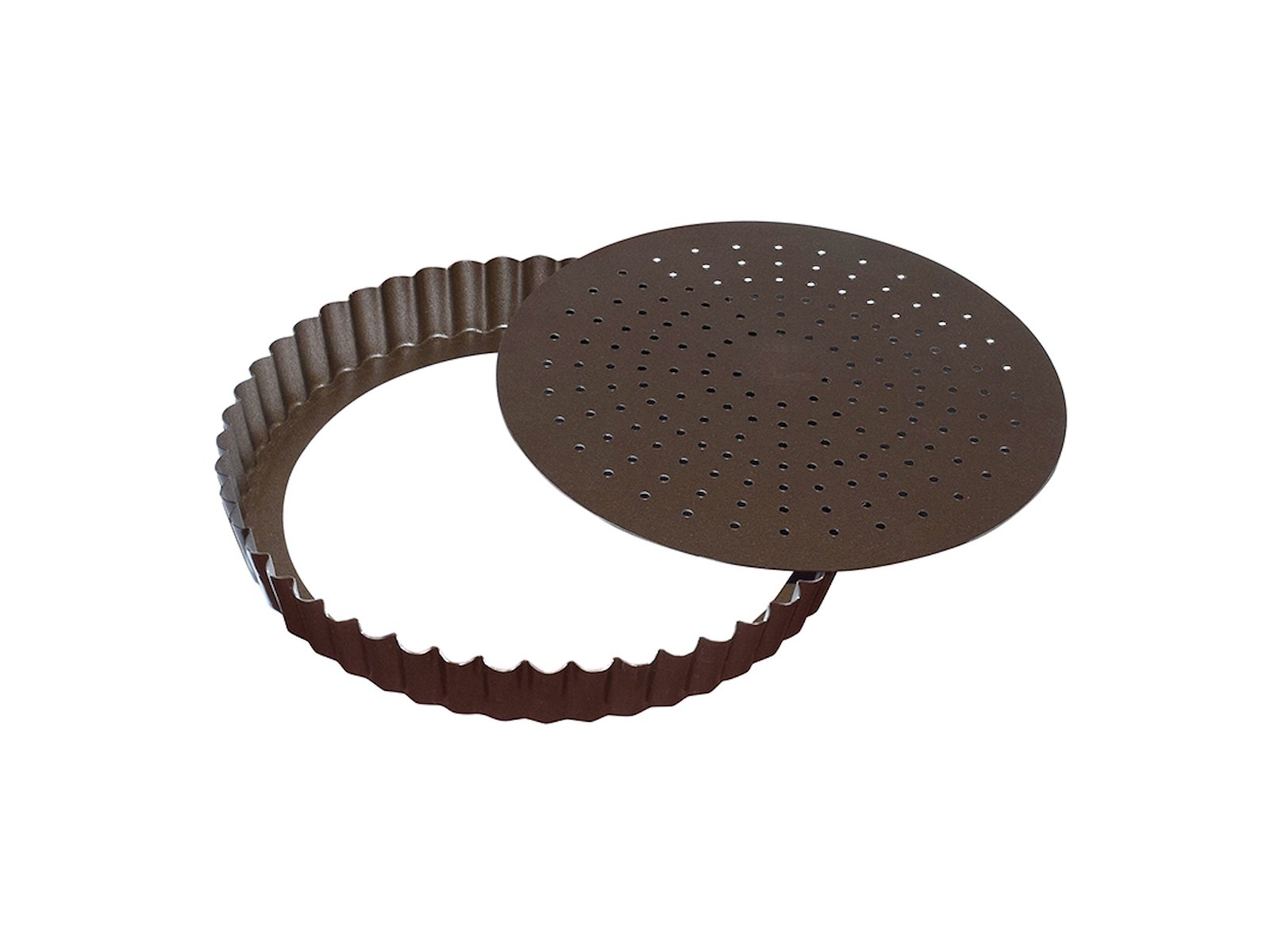 Denna bruna perforerade pajform är perfekt för att skapa läckra pajer med en perfekt krispig botten. Med sin eleganta design och högkvalitativa material gör den bakningen både enkel och njutbar.