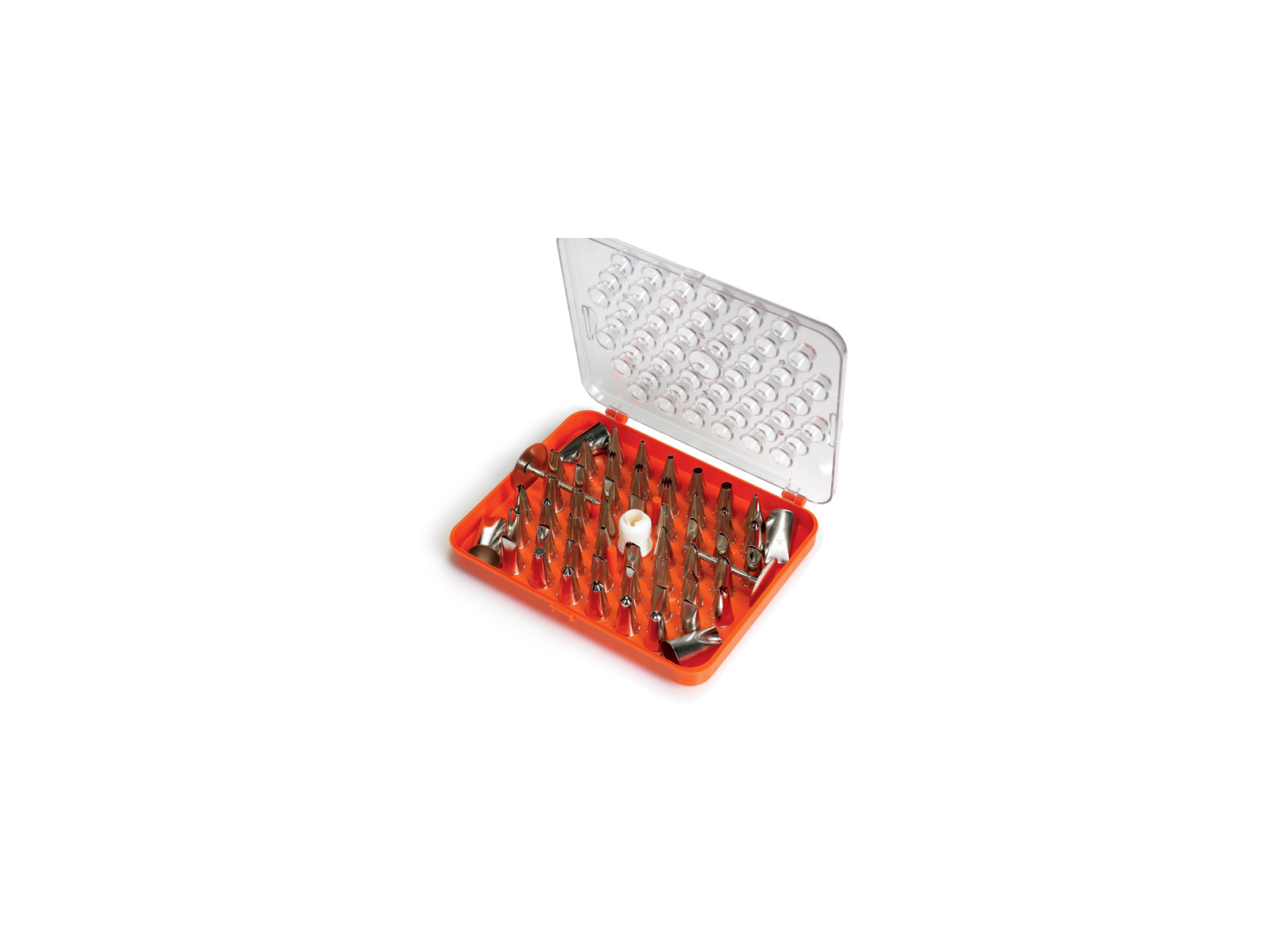 Detta tyllset från Schneider ger dig 55 olika alternativ för att skapa imponerande dekorationer på tårtor och desserter. Med tyllar i högkvalitativt rostfritt stål får du hållbara verktyg som kan användas om och om igen. Alla delar kommer i en praktisk plastlåda som håller ordning på dina tyllar och skyddar dem mellan användning.