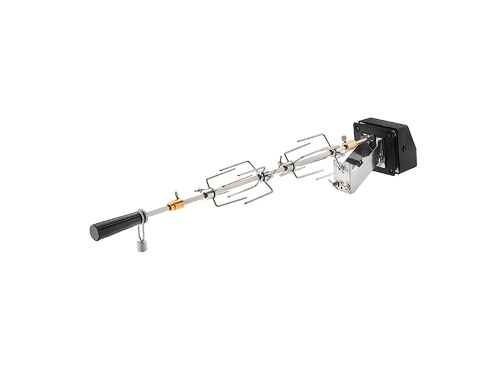 Det sexkantiga grillspettet i massivt rostfritt stål är byggt för att hålla. Med en total längd på 1030 mm och en vikt på 2 kg har rotisseriet rätt balans mellan styrka och hanterbarhet. För att bevara rotisseriets livslängd rekommenderas handdisk av delarna efter användning. Det rostfria stålet är inte bara funktionellt, utan också estetiskt tilltalande och håller sig fint, även efter många grillsessioner.