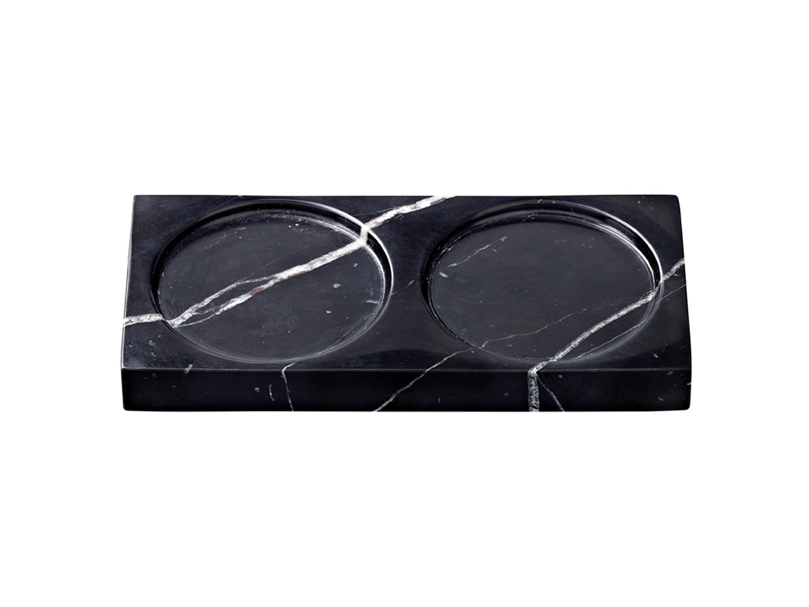 Förutom den praktiska funktionen tillför brickan också ett stilrent element till ditt bord. Den svarta marmoriserade ytan ger ett exklusivt uttryck som passar in i de flesta inredningsstilar. Materialet har en naturlig tyngd som säkerställer att brickan står kvar, även om du skulle råka trycka lite på den under måltidet. Den fungerar som ett samlande element för dina kvarnar och skapar ett mer organiserat intryck på bordet.