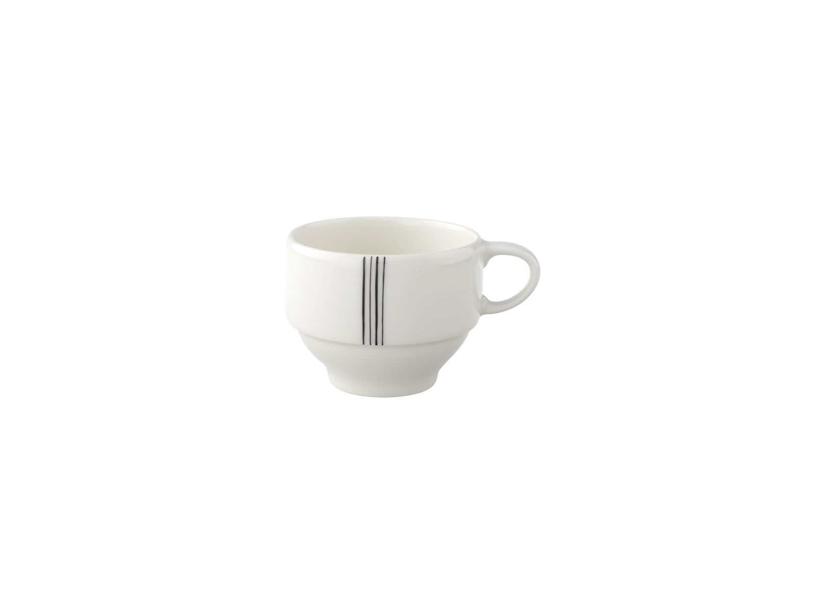 • Tillverkad i hållbart vitt porslin med svarta linjer