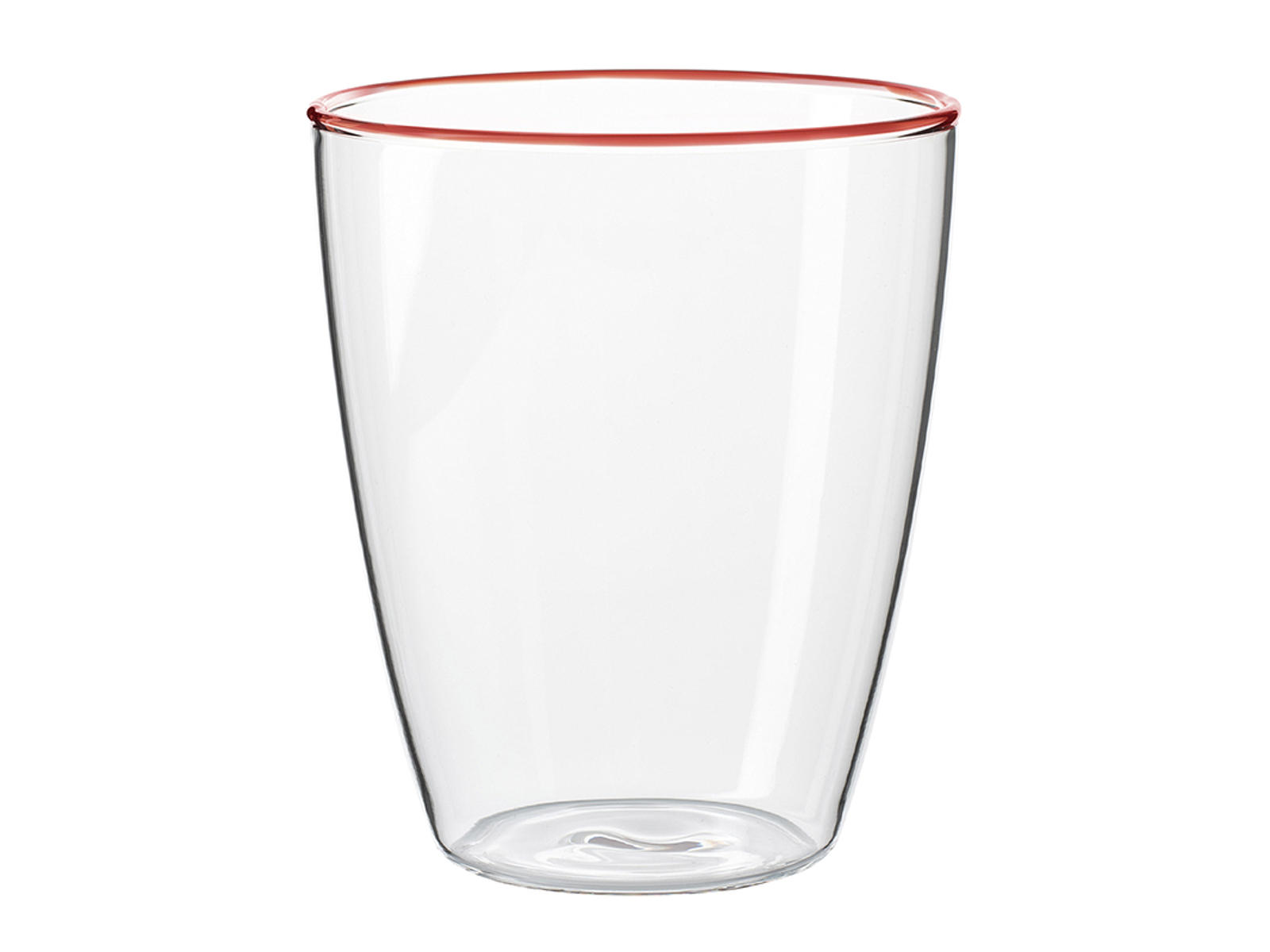 Den handgjorda röda kanten gör varje glas unikt med små naturliga variationer som vittnar om hantverket bakom. Med en kapacitet på 29 cl är glaset lämpligt för allt från vatten och juice till cocktails. Den lätta konstruktionen på endast 83 gram gör glaset behagligt att hålla, även för mindre händer, utan att kompromissa med stabiliteten.