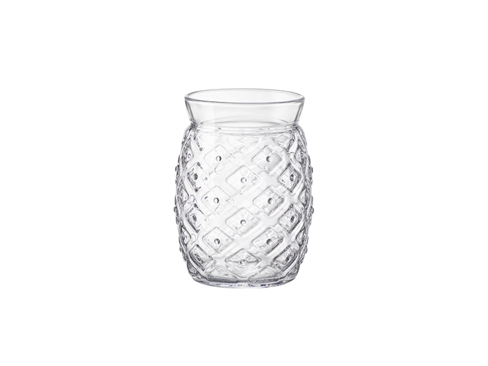 Bormioli Bartender drinksglas på 45,5 cl kombinerar elegans med funktionalitet i en vacker tiki-inspirerad design. Det detaljerade geometriska mönstret och det tropiska ananasuttrycket gör glaset till en riktig blickfångare på varje bord. Tillverkat av härdat glas, säkerställer det både hållbarhet och en förstklassig drinkupplevelse.