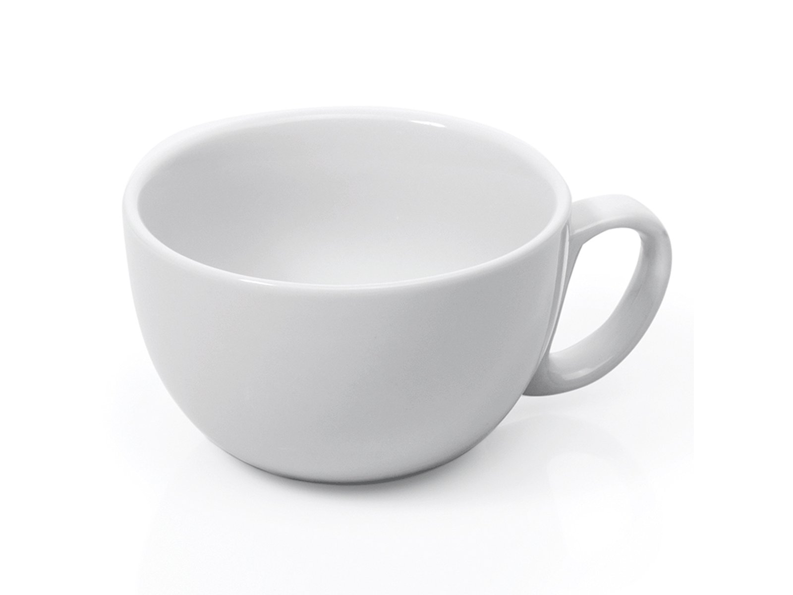 Denna eleganta vita porslinmugg är speciellt designad för caffe latte och andra mjölkbaserade kaffedrycker. Med en rymlig kapacitet på 350 ml och en diameter på 11 cm erbjuder koppen gott om plats för både kaffe och mjölkskum. Den är tillverkad i kvalitets porslin med en vikt på 330 gram, vilket ger en solid känsla när du njuter av din kaffe.