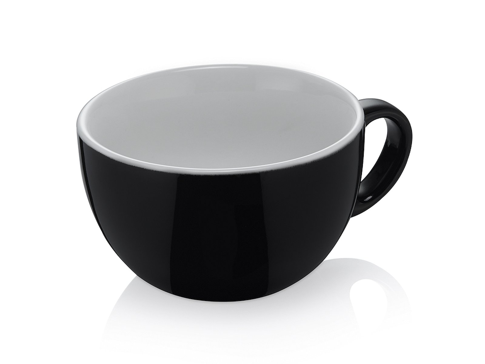 Denna eleganta Caffe Latte-kopp i svart/vitt keramik rymmer hela 350 ml och har en diameter på 11 cm. Med sin klassiska tvådelade färgkombination och robusta konstruktion är koppen designad för att ge dig en hållbar och stilfull lösning för din dagliga kaffenupplevelse. Den är tillverkad i kvalitetskeramik som håller värmen och ger en behaglig dryckesupplevelse.