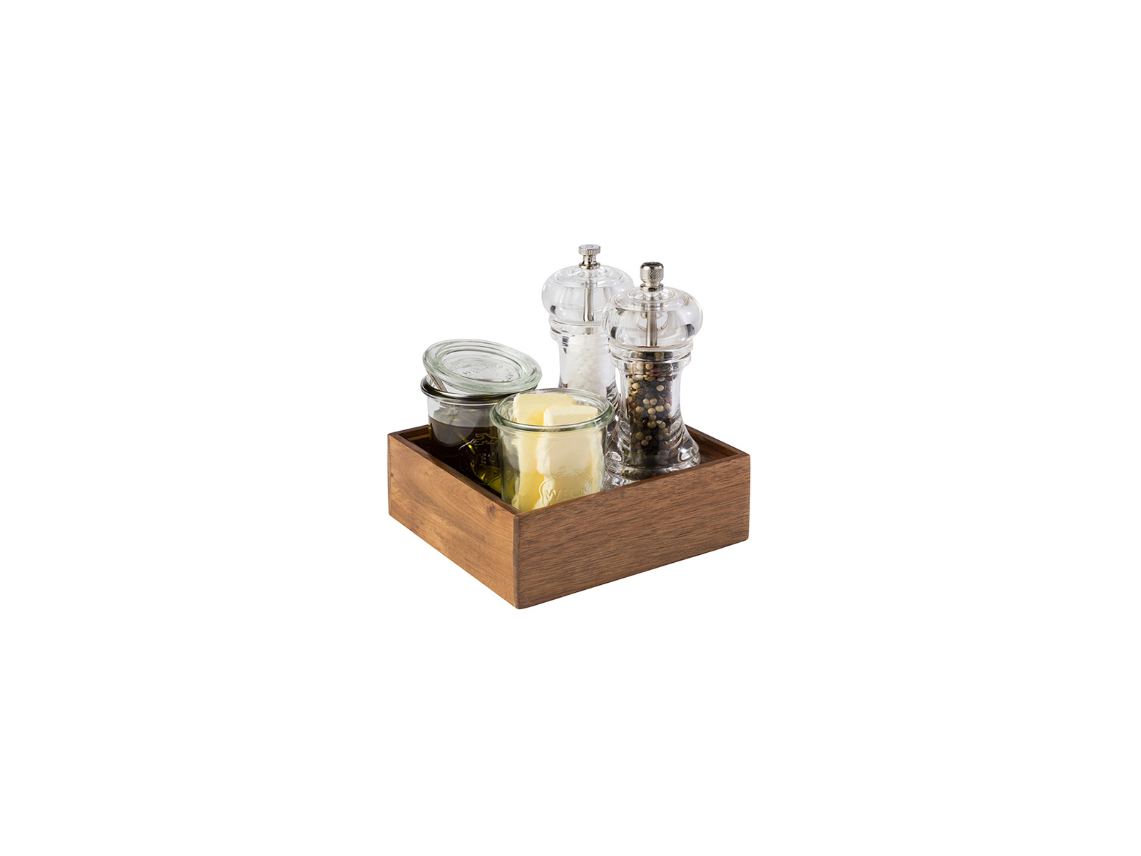 Woody förvaringslådan från APS mäter 150 mm i bredd, 150 mm i längd och har en höjd på 55 mm. Den väger 232 gram och är tillverkad av hållbart akacieträ. Lådan är designad för att vara stapelbar, vilket ger flexibilitet i förvaring och presentation. Den säljs som enstaka enhet och ingår i APS populära Woody-serie, som kombinerar naturmaterial med funktionell design.