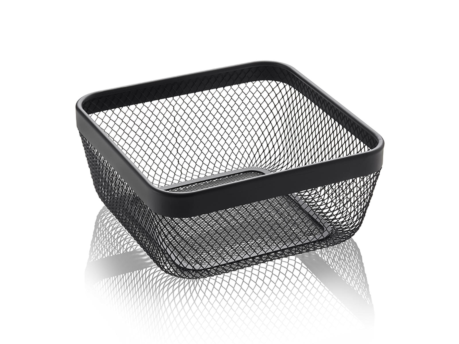 Denna svarta nätkorg på 24,5x24,5x11 cm är tillverkad av hållbart trä med en stilren nätdesign. Med sin funktionella storlek och robusta konstruktion erbjuder korgen både praktisk förvaringsplats och ett dekorativt inslag i ditt hem. Den väger endast 370 gram, vilket gör den lätt att flytta runt efter behov.