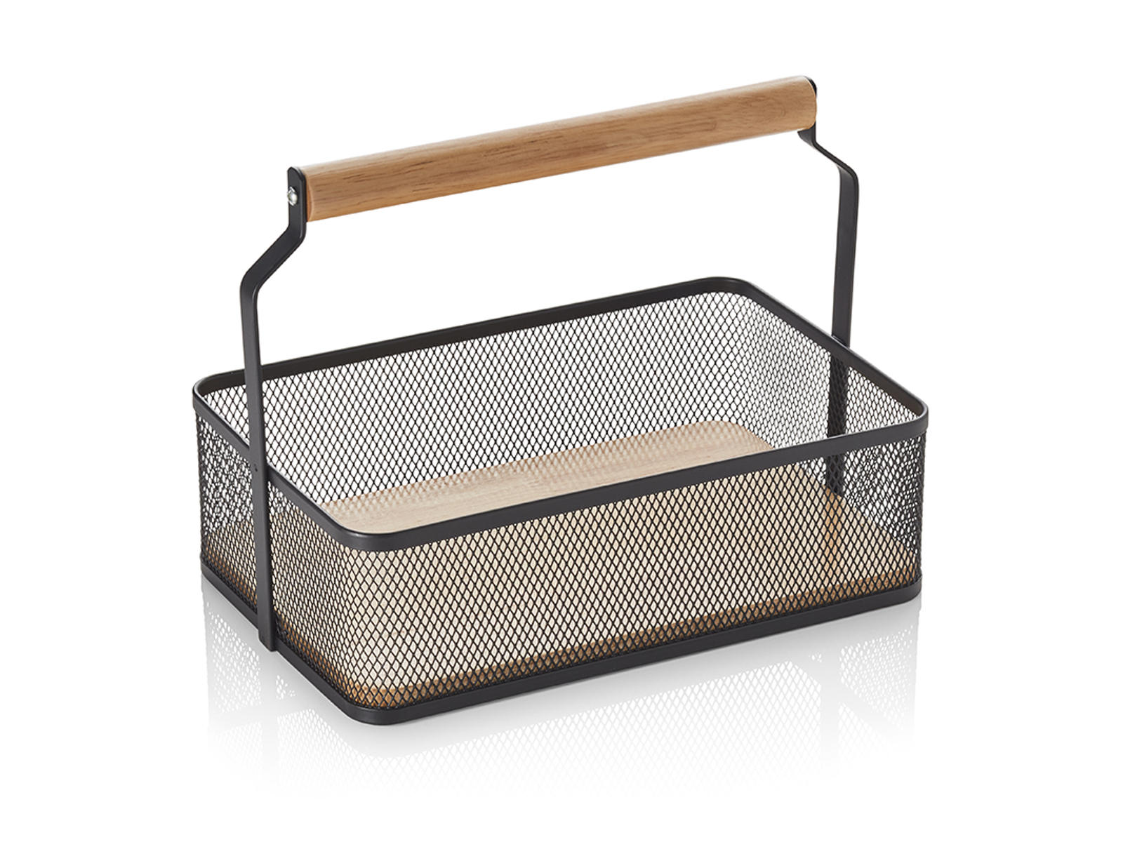 Korg i svart nät med trähandtag - stilren förvaring
