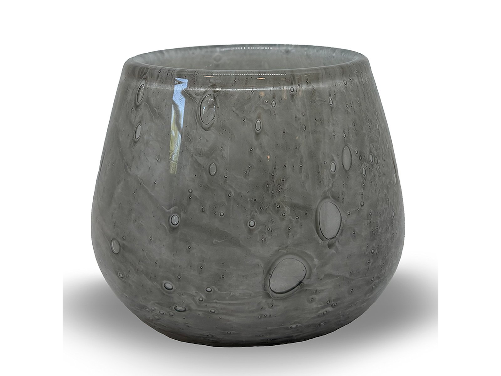 Luna ljusstaken i mundblåst, återvunnet glas förenar funktionalitet och estetik i en tidlös design. Med en diameter på 12 cm och en höjd på 10,5 cm skapar denna grå glasstake en varm och inbjudande atmosfär. Den handgjorda tillverkningsprocessen säkerställer att varje stake har sitt eget unika uttryck och mönster.