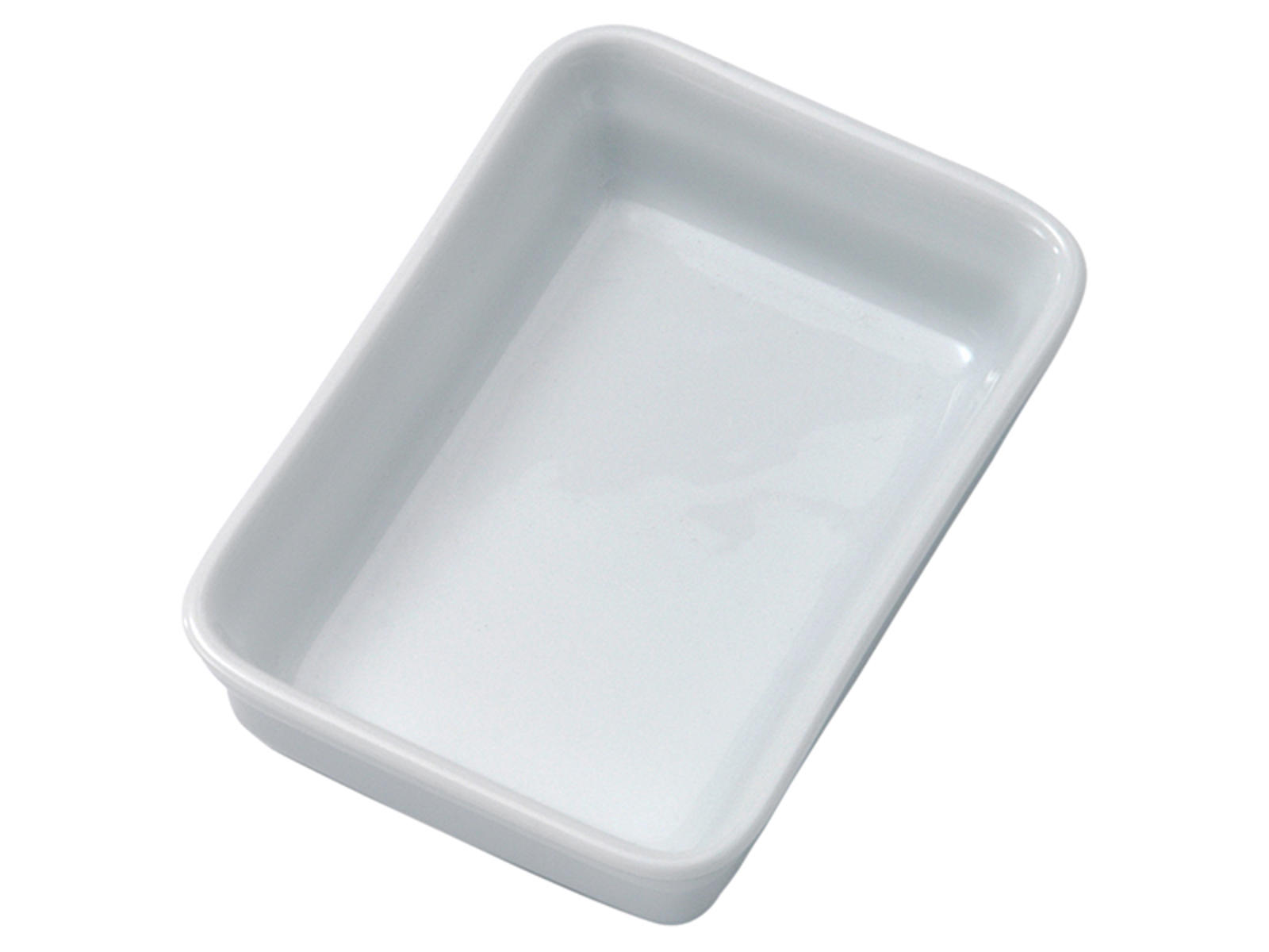 Skålens rektangulära form ger ett modernt och elegant utseende som passar in i varje dukning. Den vita färgen fungerar som en neutral bakgrund som framhäver maten och ger möjlighet till kreativ presentation. Porslinets höga kvalitet säkerställer en jämn värmefördelning, vilket gör skålen lämplig för både kalla och varma rätter. Den lilla storleken sparar dessutom plats på bordet när du vill servera flera olika små rätter samtidigt.