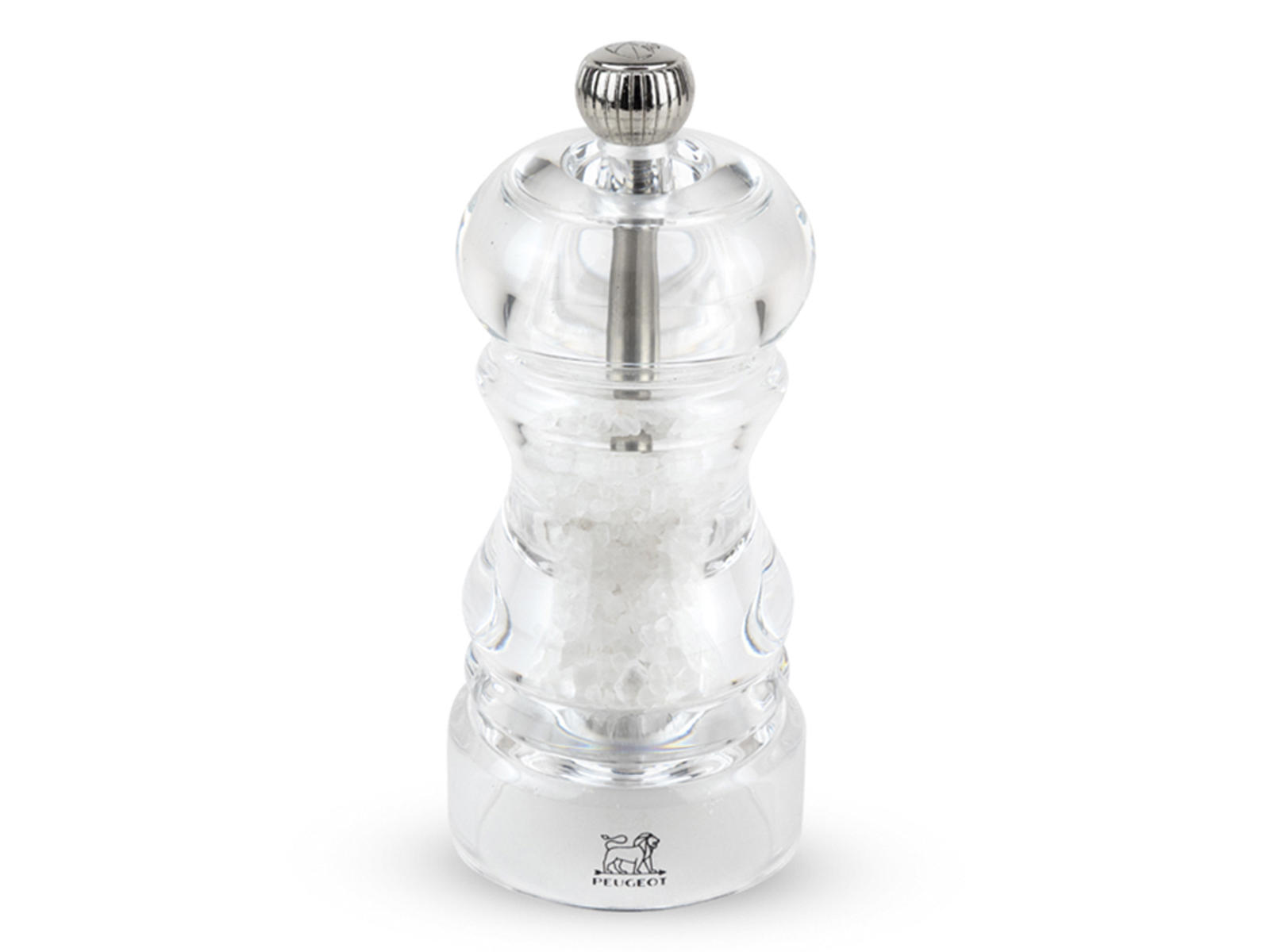 Peugeot Nancy saltkvarn i akryl kombinerar elegant design med funktionalitet. Med en höjd på 12 cm och en vikt på cirka 201 gram är denna saltkvarn både kompakt och lätt att hantera. Kvarnen är tillverkad av hållbar akryl, vilket ger ett modernt uttryck och gör att du kan se mängden salt inuti.