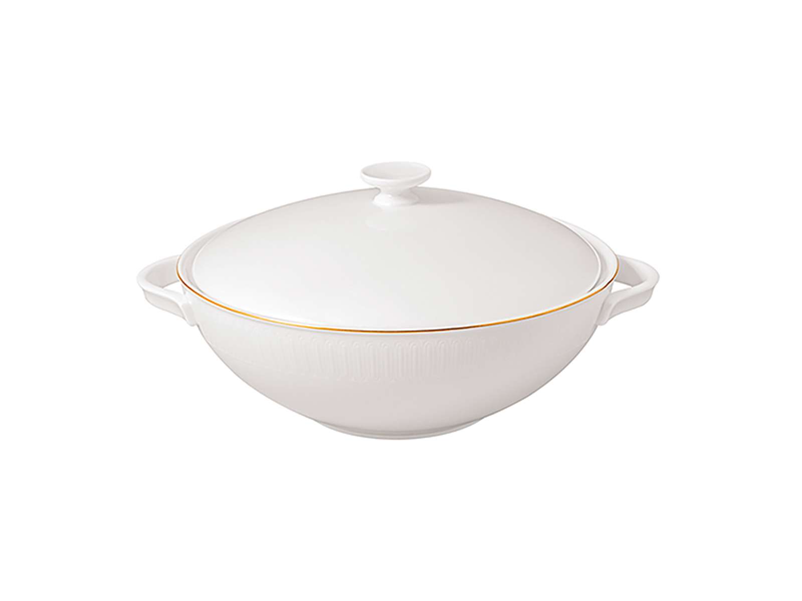 Soppskålen är designad som en del av Château Septfontaines-kollektionen och harmoniserar perfekt med andra delar från samma serie, men kan också kombineras med neutralt vitt porslin för ett klassiskt uttryck.