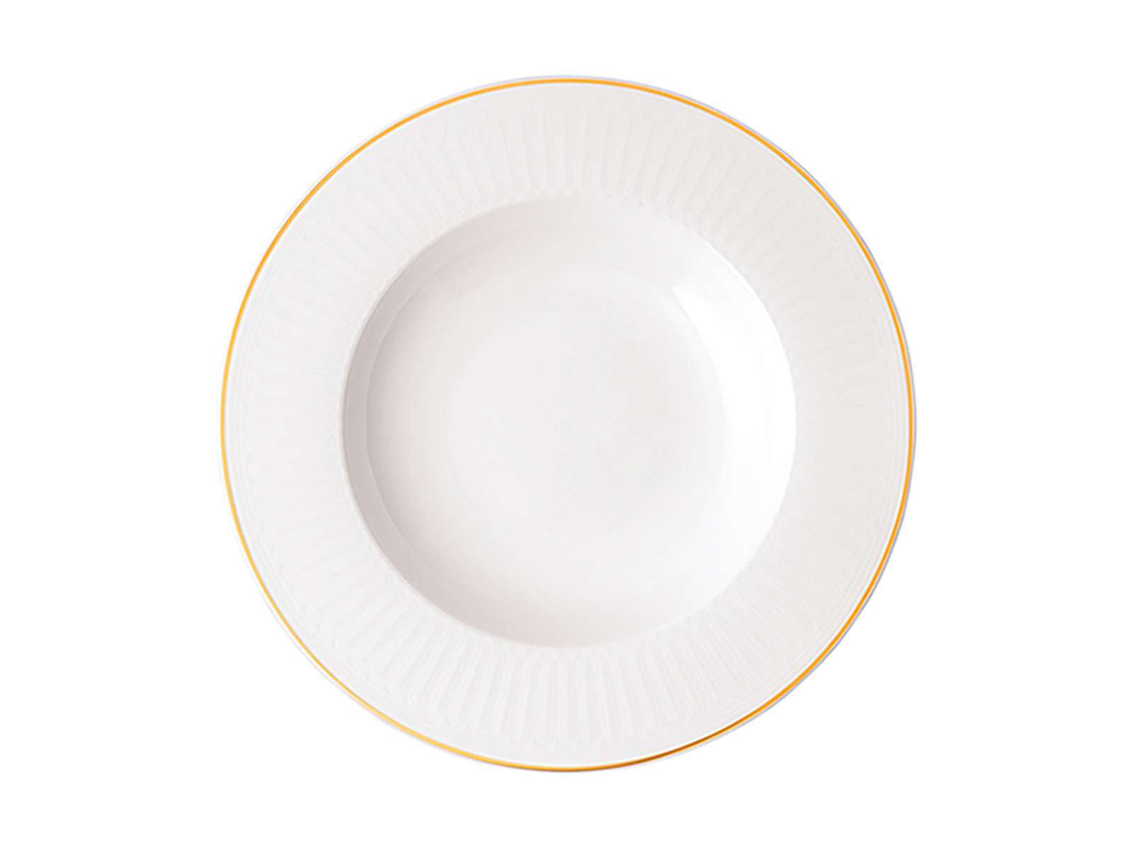 Denna djupa porslinstallrik från Villeroy & Boch's Chateau Septfontaines-kollektion kombinerar klassisk elegans med praktisk funktionalitet. Med en diameter på 29 cm och en djup på 14 cm ger tallriken gott om utrymme för soppor, pastarätter och andra fuktiga rätter, medan det hållbara porslinet säkerställer lång livslängd.