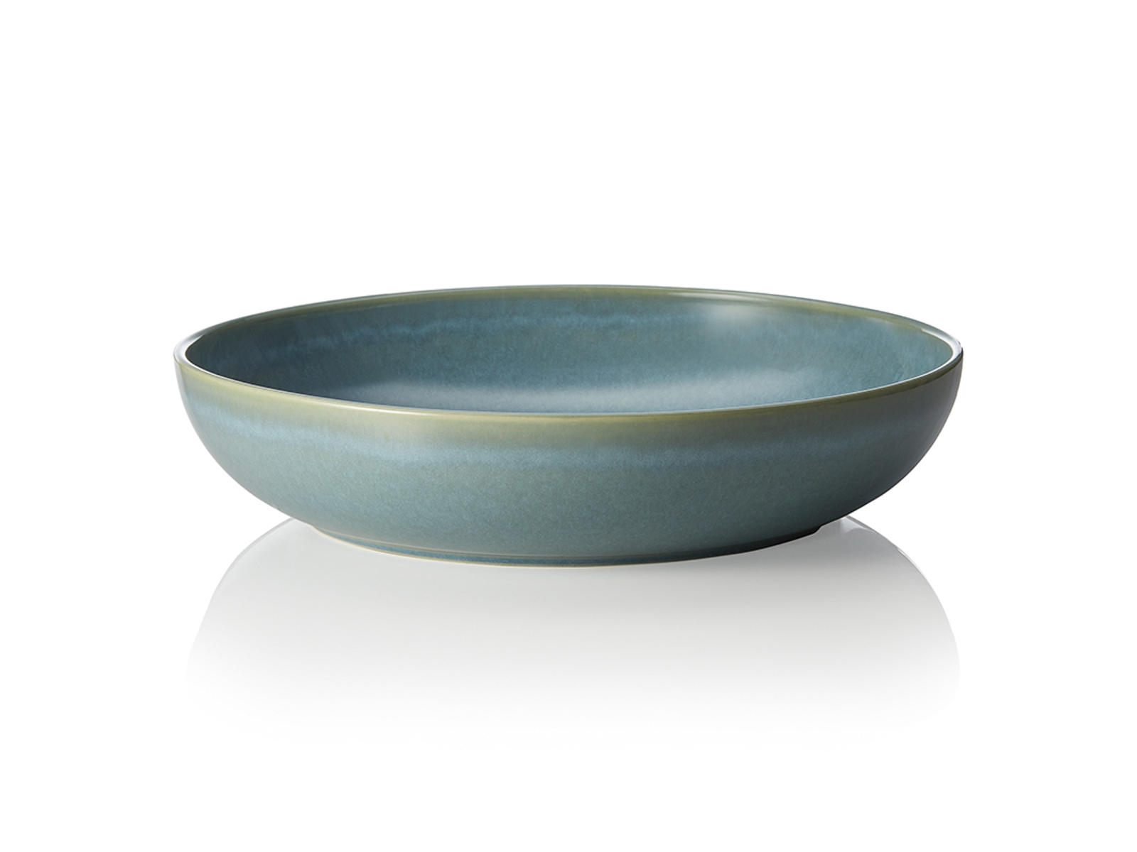 Denna rymliga serveringsskål i stengods från Rockzeros One Myrtle Green-serie förenar funktionalitet och estetik på ett vackert sätt. Med en diameter på 33 cm, höjd på 7 cm och kapacitet på 3 liter ger skålen gott om plats för både vardagliga och festliga serveringar. Den karakteristiska grön-blå glasyr tillför bordet ett lugnt, naturligt uttryck.