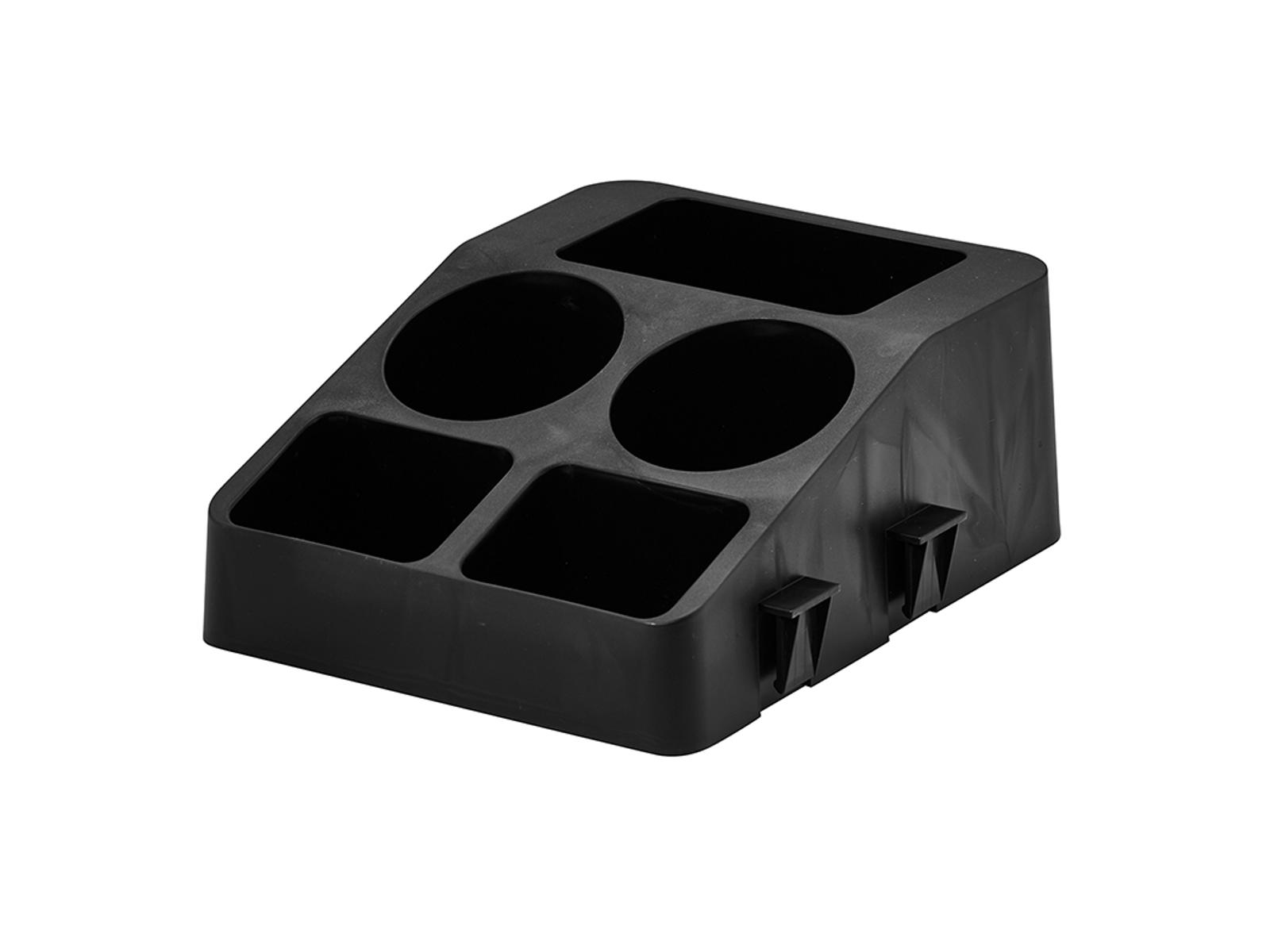 Servicestationens fem rum möjliggör att hålla ordning på allt från socker och mjölk till tepåsar, rörpinnar och engångsmuggar. Detta skapar ett professionellt intryck och säkerställer att allt är organiserat och lättillgängligt för användarna. Den moduluppbyggda designen gör att du kan kombinera flera enheter eller lägga till en matchande droppbricka för att skapa den serveringslösning du behöver.