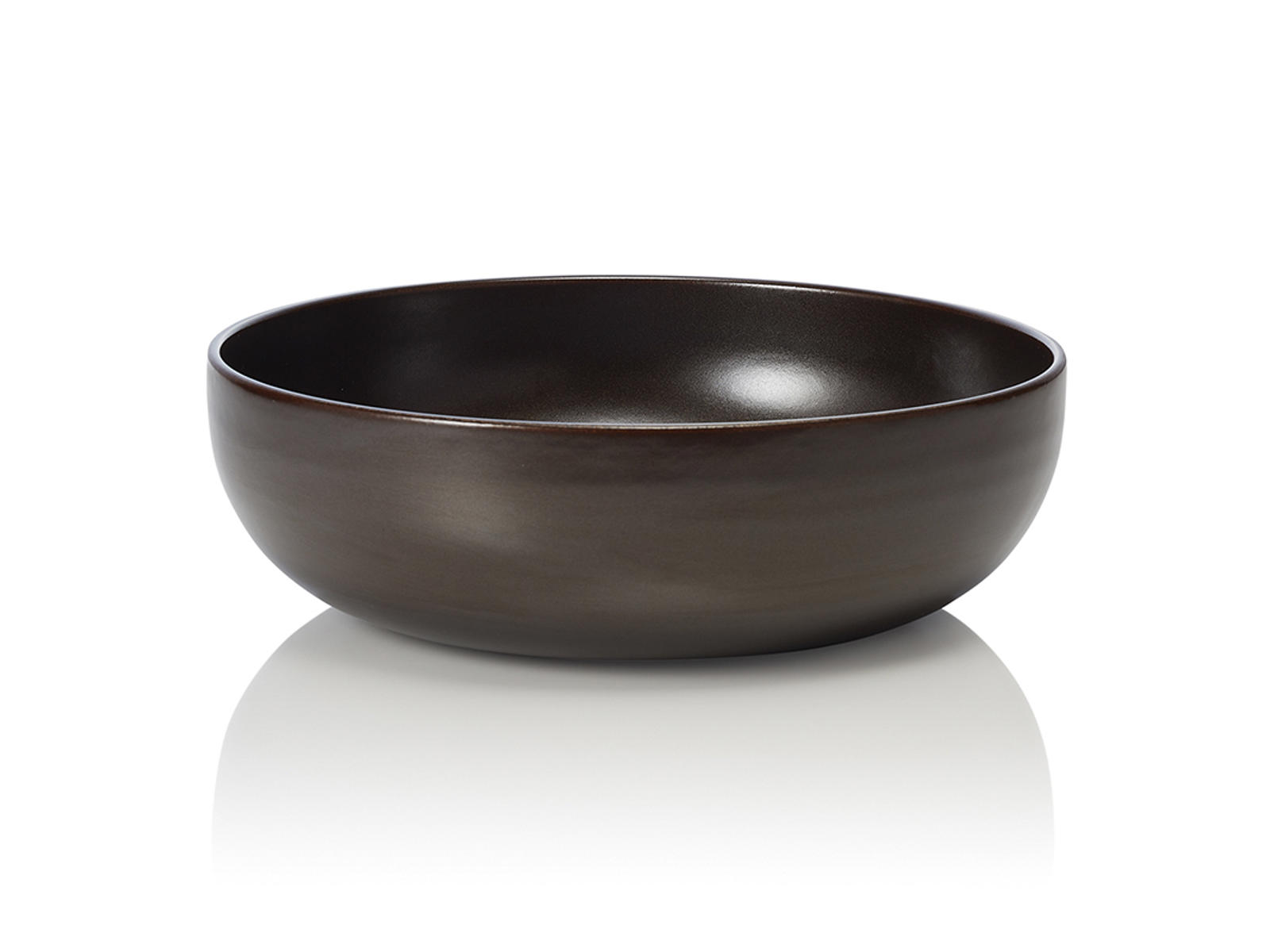Denna 2-liters skål från Rockzzero's One Metallic Brown-serie är tillverkad i hållbart stengods med en karakteristisk mörkbrun metallisk glasyr. Med en diameter på 26 cm och en höjd på 8,5 cm har skålen den perfekta storleken för större portioner, oavsett om det gäller sallader, pastarätter, frukt eller deg.