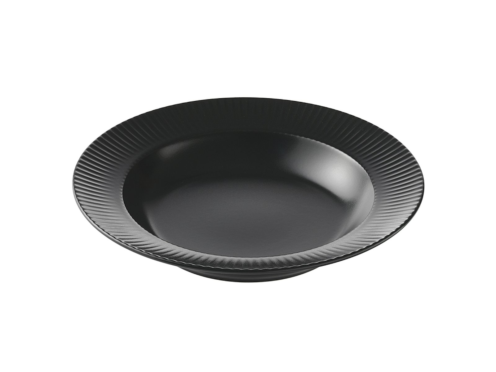Den svarta färgen ger tallriken ett tidlöst uttryck som passar in i varje kök och dukning. Groovy-seriens karaktäristiska design säkerställer att tallriken inte bara är funktionell, utan också tillför ett stilrent element till din dukning. Den genomtänkta djupet gör tallriken särskilt lämplig för rätter med sås eller soppa, där en platt tallrik skulle vara opraktisk.