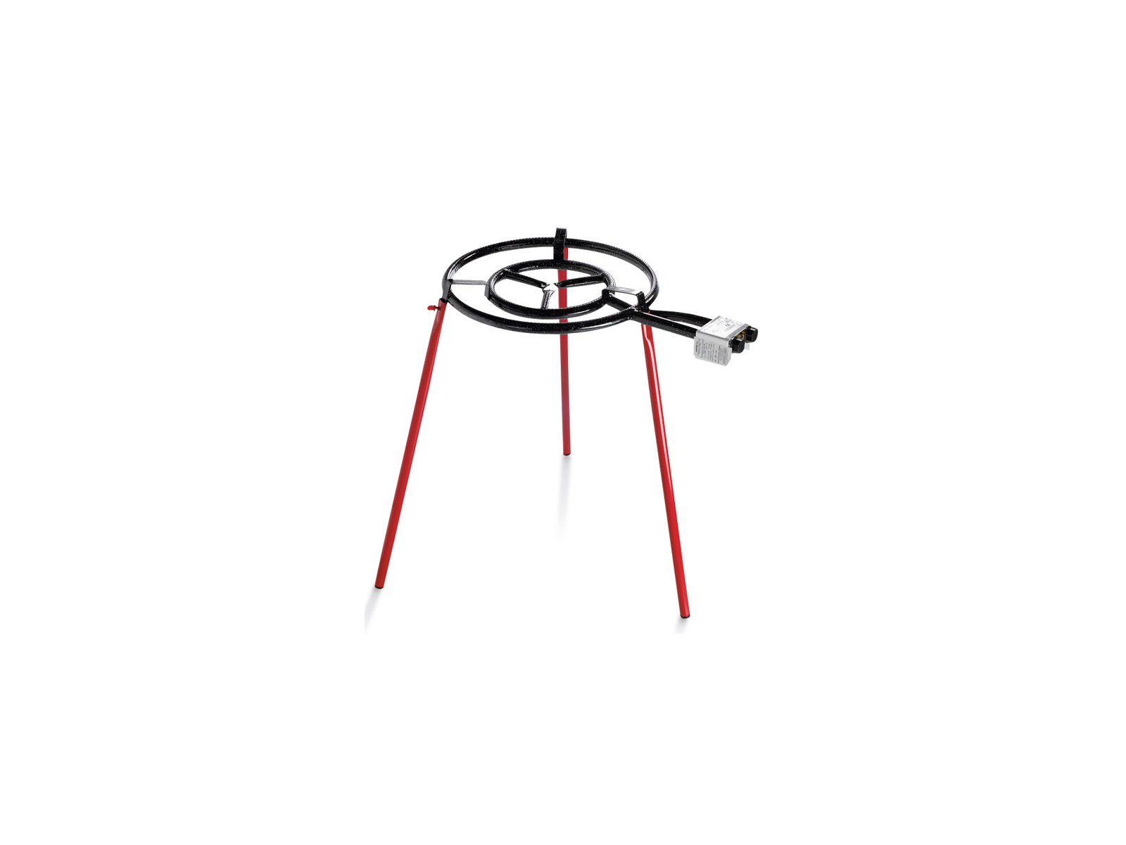 Bena är konstruerade i rostfritt stål med röd epoxibeläggning, vilket gör dem motståndskraftiga mot väderpåverkan och slitage vid utomhusbruk. Varje ben monteras oberoende på gasbrännarens fötter, vilket ger möjlighet att justera uppställningen efter underlaget. Fjädermuttrarna säkerställer att benen förblir ordentligt fästa under användning, så att du inte riskerar att din brännare välter under matlagningen - även när du rör i en full paellapanna.