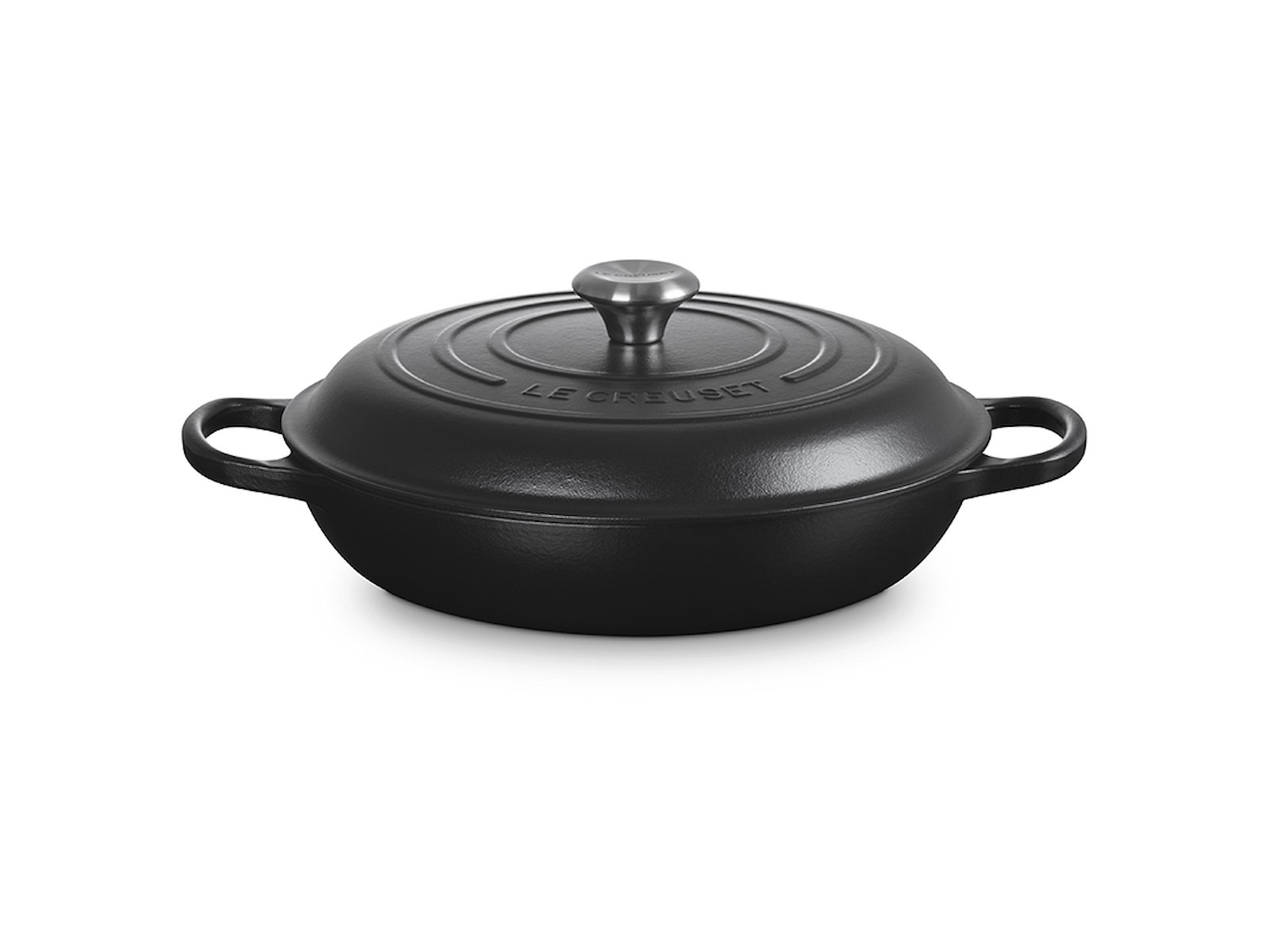Denna buffégryta från Le Creuset i mattsvart kombinerar klassisk design med utmärkt funktionalitet. Med en diameter på 30 cm och en kapacitet på 3,5 liter ger den gott om utrymme för att laga mat till hela familjen. Tillverkad av emaljerat gjutjärn fördelar och håller grytan värmen, vilket säkerställer jämn matlagning och längre värmehållning vid servering.