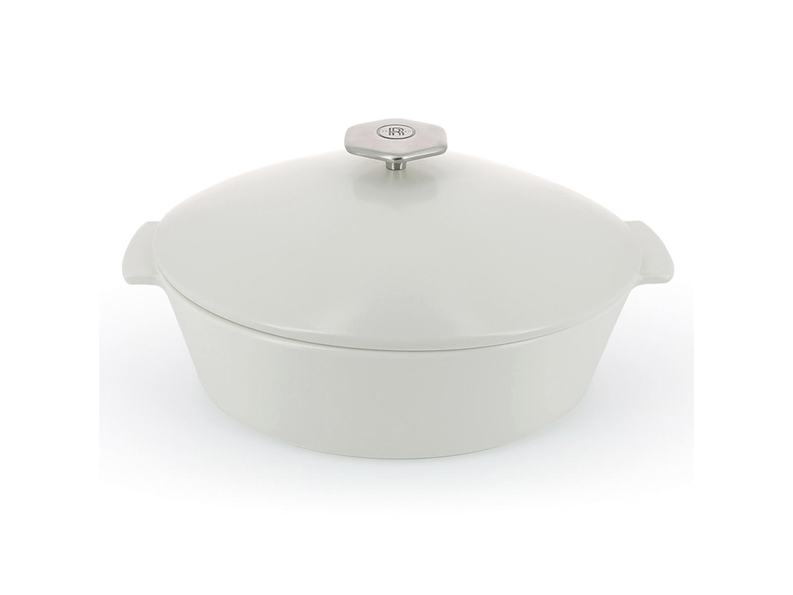 Denna ovala gryta från Revol Porcelæns Revolution 2-serie kombinerar avancerad teknik med tidlös design. Tillverkad av noggrant utvalda mineralmaterial och bränd vid höga temperaturer ger grytan en utmärkt värmefördelning och hållbarhet. Med sina mått på 30,5x25,5 cm och en höjd på 140 mm rymmer den 3,5 liter.