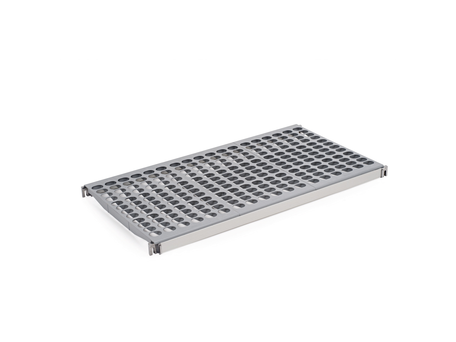 Den grå polypropylenhyllan mäter 600 mm i bredd och har en längd på 1060 mm, vilket ger gott om utrymme för förvaring. Med en höjd på endast 45 mm upptar hyllan minimal vertikal plats, men erbjuder maximal funktionalitet. Den robusta konstruktionen säkerställer att hyllan klarar av daglig användning i krävande miljöer, och materialvalet gör den lätt att rengöra och underhålla.