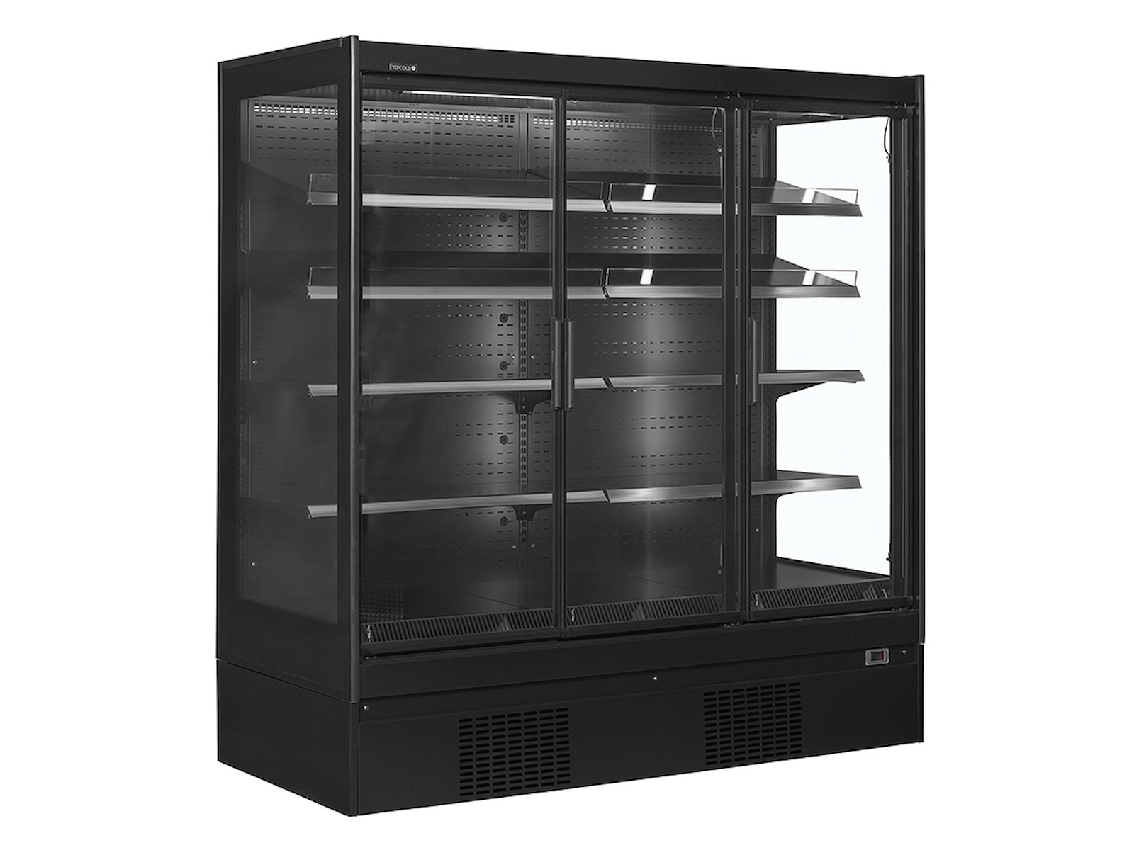 Med tre dörrar kan du enkelt visa upp ett stort sortiment av produkter samtidigt som kunderna snabbt kan se vad som erbjuds. Den kompakta storleken gör det lätt att placera kylskåpet i trånga utrymmen utan att kompromissa med kapaciteten.