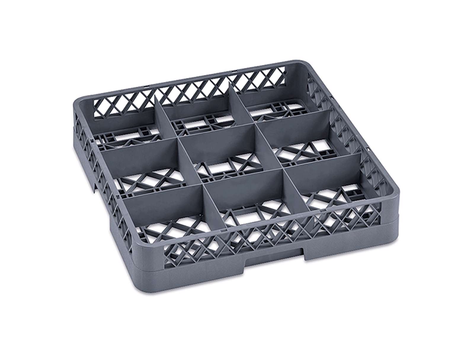Denna grå diskkorg från WAS är specifikt utformad för att hålla ordning på och skydda dina glas under maskindiskning. Med standardmåtten 50x50 cm passar korgen i de flesta industriella diskmaskiner och har en praktisk indelning med 9 fack, var och en med måtten 15,5x15,5 cm. Diskkorgen är tillverkad av slitstark polypropen som tål upprepad användning i professionella miljöer.