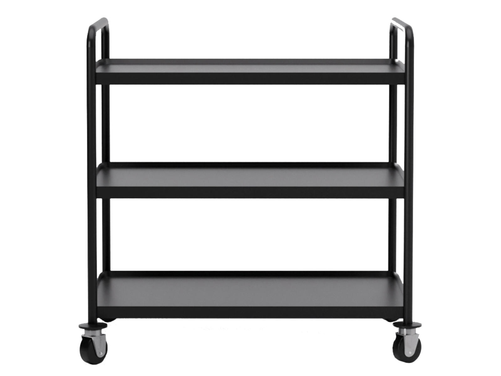 Rullbordet är tillverkat av svart rostfritt stål, som är både slitstarkt och lätt att underhålla. Med sina exakta mått på 86x53,5x96 cm passar det in i de flesta rum utan att ta upp för mycket plats. De tre hyllorna ger gott om förvaringsutrymme för olika ändamål.