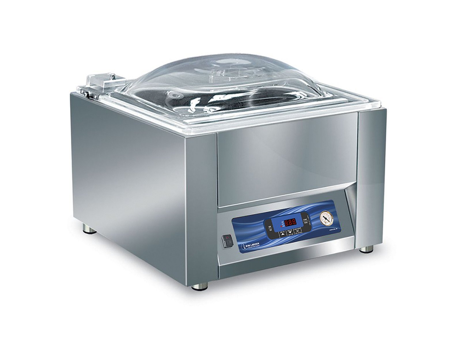 Denna golvmodell är byggd för att klara intensiv användning i hektiska köksmiljöer. Den solida konstruktionen i rostfritt stål säkerställer enkel rengöring och efterlevnad av hygienkrav, medan den kraftiga oljebaserade vakuumpumpen levererar konsekvent prestanda även vid upprepad användning. De integrerade hjulen gör det möjligt att flytta maskinen vid behov, vilket ger flexibilitet i arbetsflödet trots maskinens vikt på 110 kg.