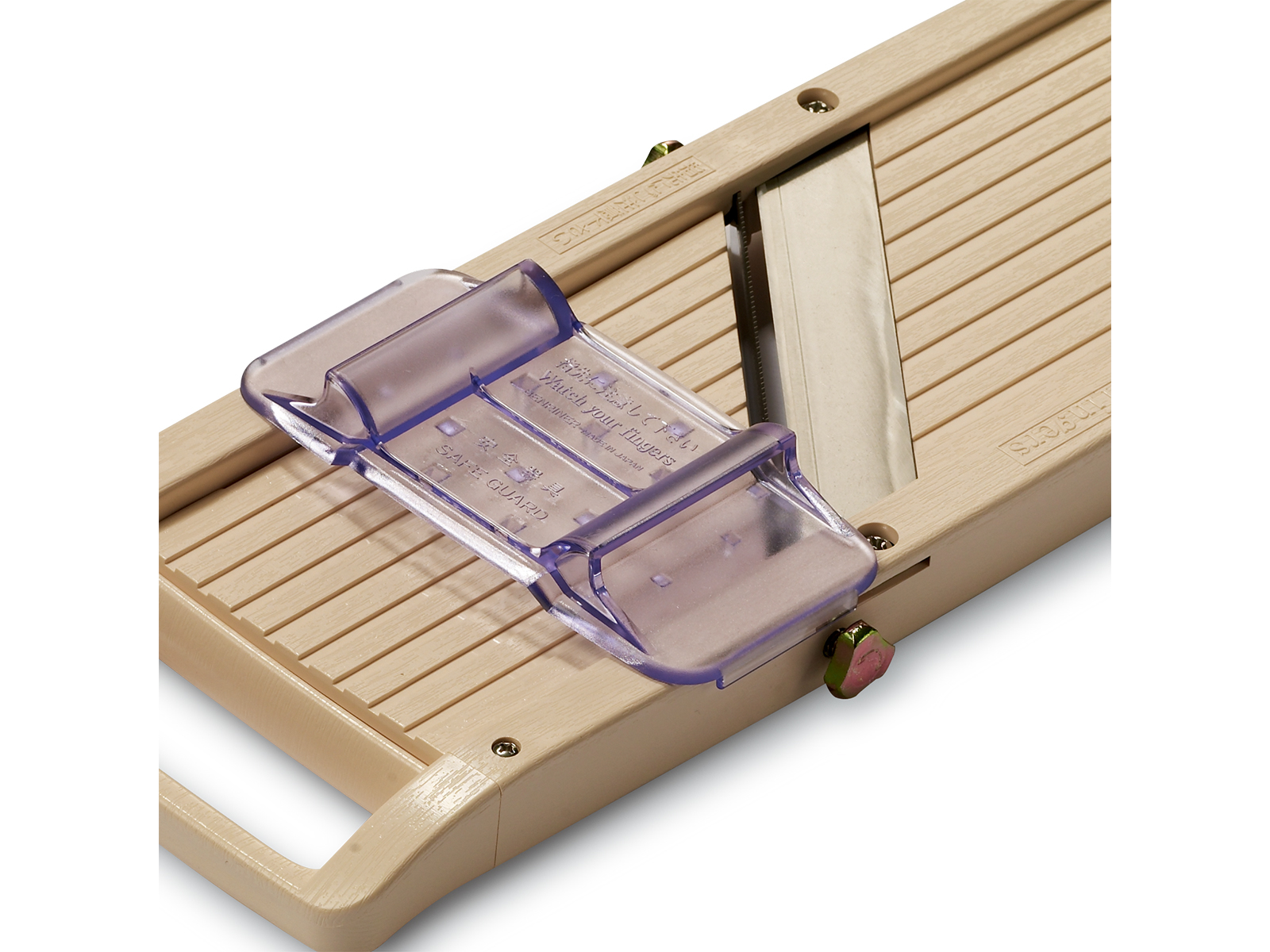 Denne japanska mandolinmodell från Louis Tellier är den ursprungliga versionen som har satt standarden i professionella kök. Den ergonomiska utformningen gör den bekväm att arbeta med, även vid större mängder ingredienser. Kombinationen av den 95 mm breda skärytan och de olika skärbladen ger dig möjlighet att skapa precis den textur och det uttryck du önskar i dina rätter.