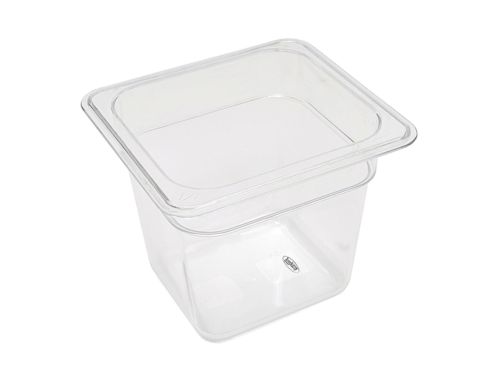 Denna Maxima kantin i 1/9 GN-format är tillverkad av hållbart, transparent polykarbonat med en kapacitet på 0,6 liter. Med sina exakta mått på 174 x 107 mm och en höjd på 64 mm passar den perfekt in i standardiserade kökssystem och ger dig full kontroll över innehållet.
