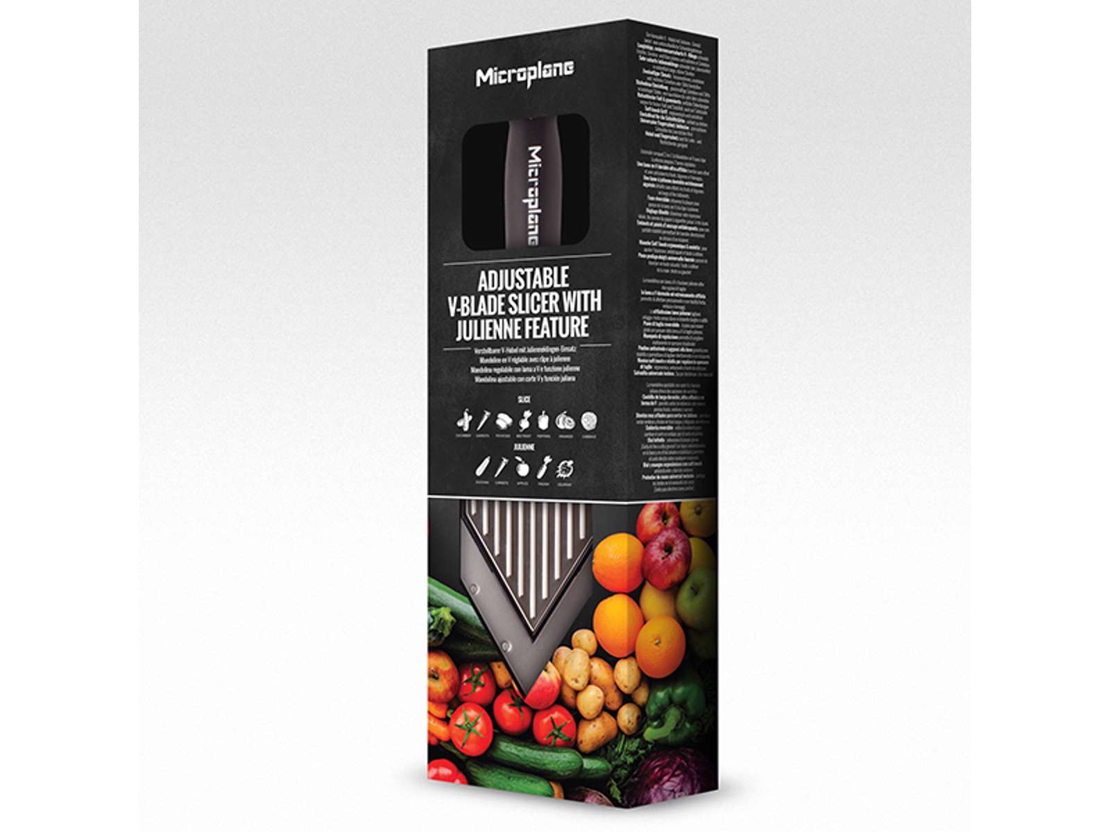 Detta mandolinjärn från Microplane är utrustat med patenterade fotoetsade blad som säkerställer enastående skärpa och precision. Med både V-skär och julienne-tänder kan du enkelt skapa perfekta skivor och strimlor av frukt, grönsaker och ost. Idealiskt för matlagningentusiaster som önskar jämna resultat och en professionell finish på sina rätter.
