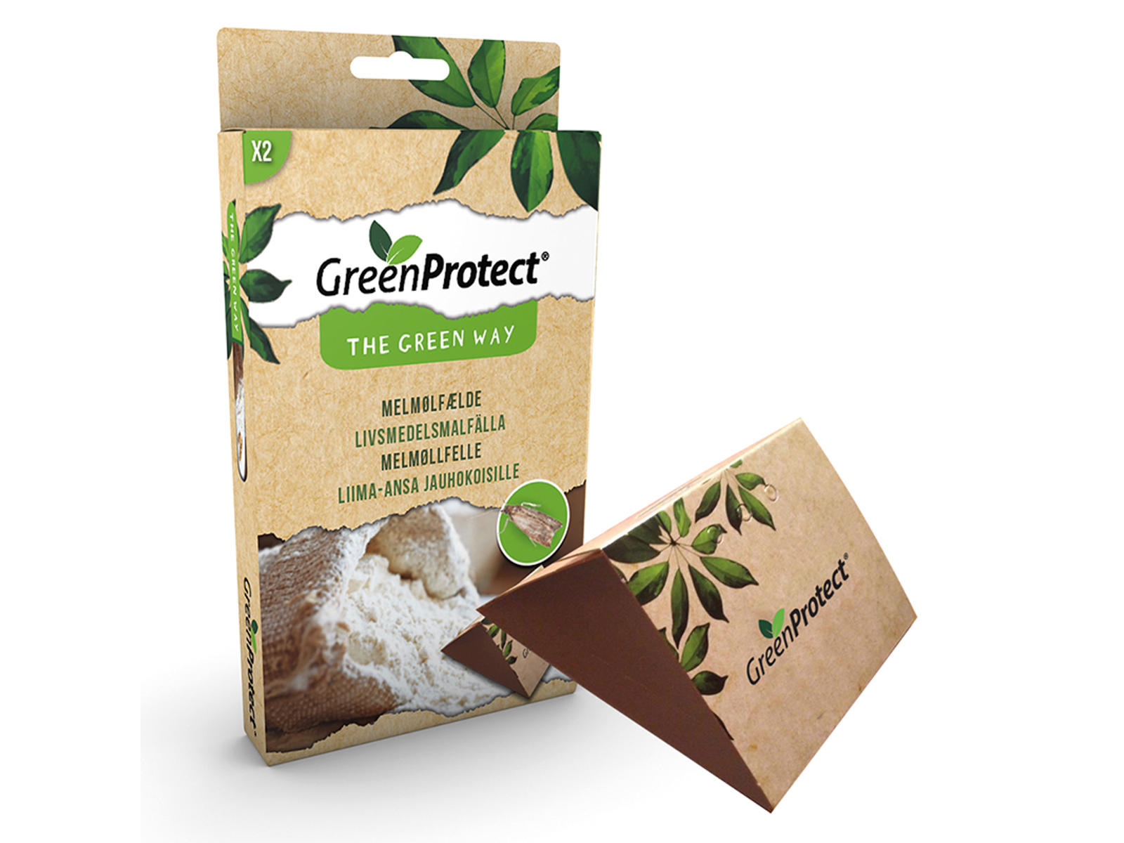 Paketet innehåller 2 fällor med integrerade feromoner som specifikt attraherar mjölmal och tvåfärgad frömal. Varje fälla har en effektiv verkningsperiod på upp till 6 veckor. Fällorna är designade för inomhusbruk i kök och skafferier där torrvaror förvaras. Produkten är tillverkad av Green Protect, som specialiserar sig på miljövänliga skadedjurslösningar.