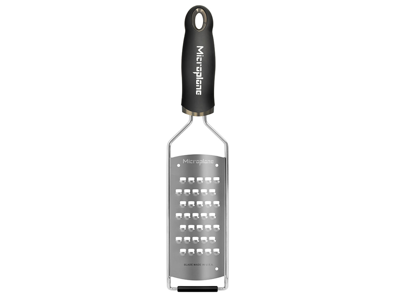 Detta extra grova rivjärn från Microplane Gourmet-serien kombinerar skärpa och funktionalitet i ett robust köksredskap. Med fotograverade blad av kirurgiskt rostfritt stål och en rymlig rivyta på 13,3 x 6,7 cm, hanterar det enkelt även de hårdaste ingredienserna. Idealiskt för kök där effektivitet och precision är avgörande.
