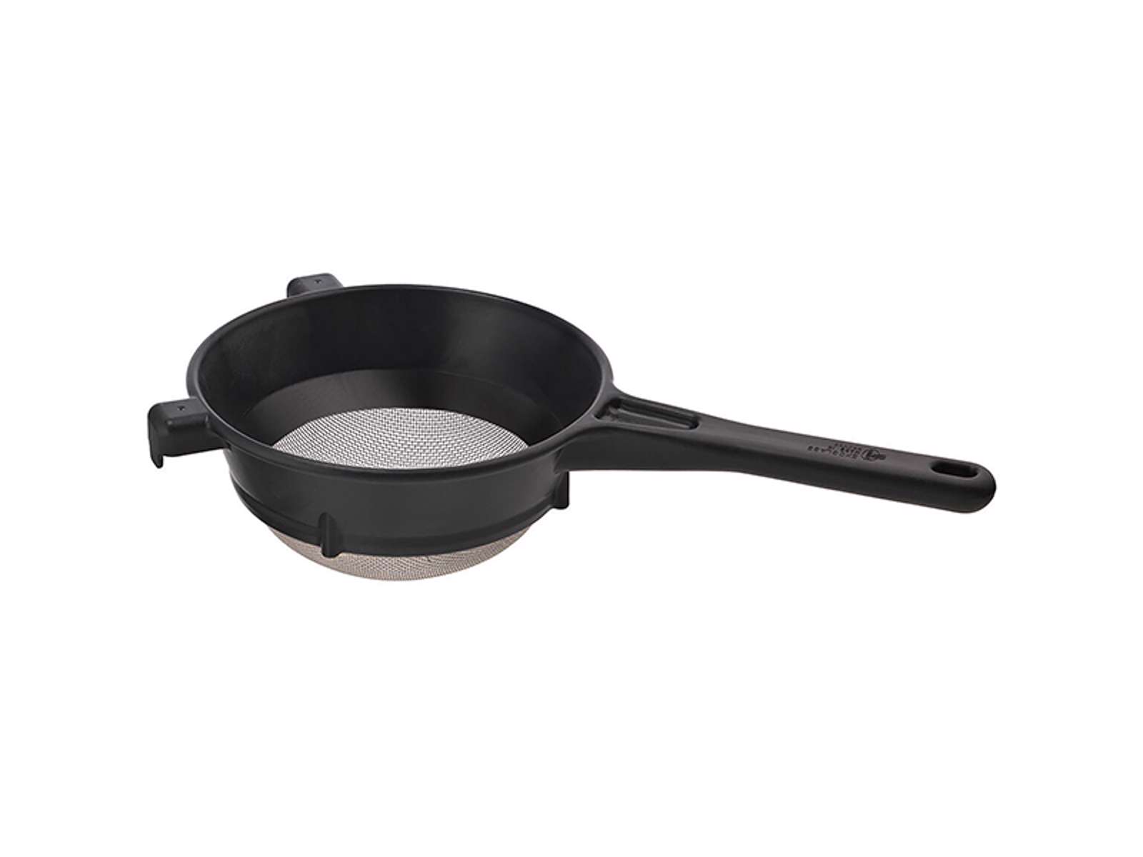 Med en total längd på 410 mm och en höjd på 95 mm är sikten designad för att vara funktionell utan att ta upp för mycket plats. Den svarta exoglass-ramen ger inte bara hållbarhet utan också ett professionellt utseende. Handtaget är utrustat med ett praktiskt upphängningshål, så sikten kan hängas upp och därmed spara värdefull skåputrymme i köket. Den låga vikten på endast 355 gram minskar belastningen vid upprepad användning, vilket är särskilt värdefullt i hektiska arbetsmiljöer.