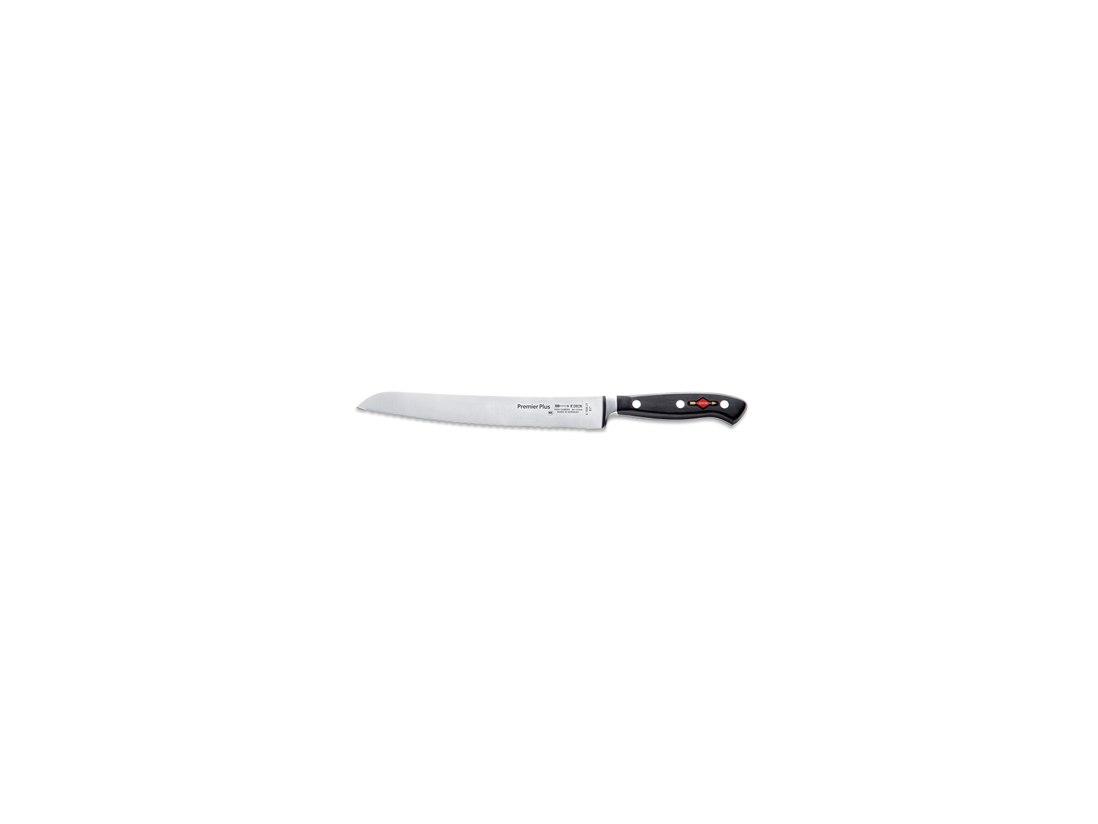 F. Dick Premier Plus brödkniv med 21 cm långt blad kombinerar funktionalitet och hantverk i högsta kvalitet. Den kraftiga vågskäret skär obehindrat genom både krispiga brödtyper och ingredienser med hårda, släta eller sega ytor. Kniven är tillverkad av X50CrMoV15 rostfritt stål med en hårdhet på 58 HRC, vilket säkerställer långvarig skärpa och hållbarhet.