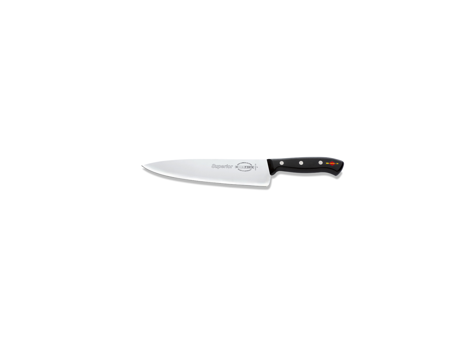 F. Dick Superior kockkniven med 23 cm blad är tillverkad av X50CrMoV15 rostfritt stål, vilket garanterar långvarig skärpa och hållbarhet. Den polerade eggkanten ger precisa snitt, medan det ergonomiska handtaget i plast med tre nitar erbjuder ett stabilt och bekvämt grepp. Idealisk för professionella kök och matentusiaster som värdesätter kvalitet och funktionalitet i sin dagliga matlagning.