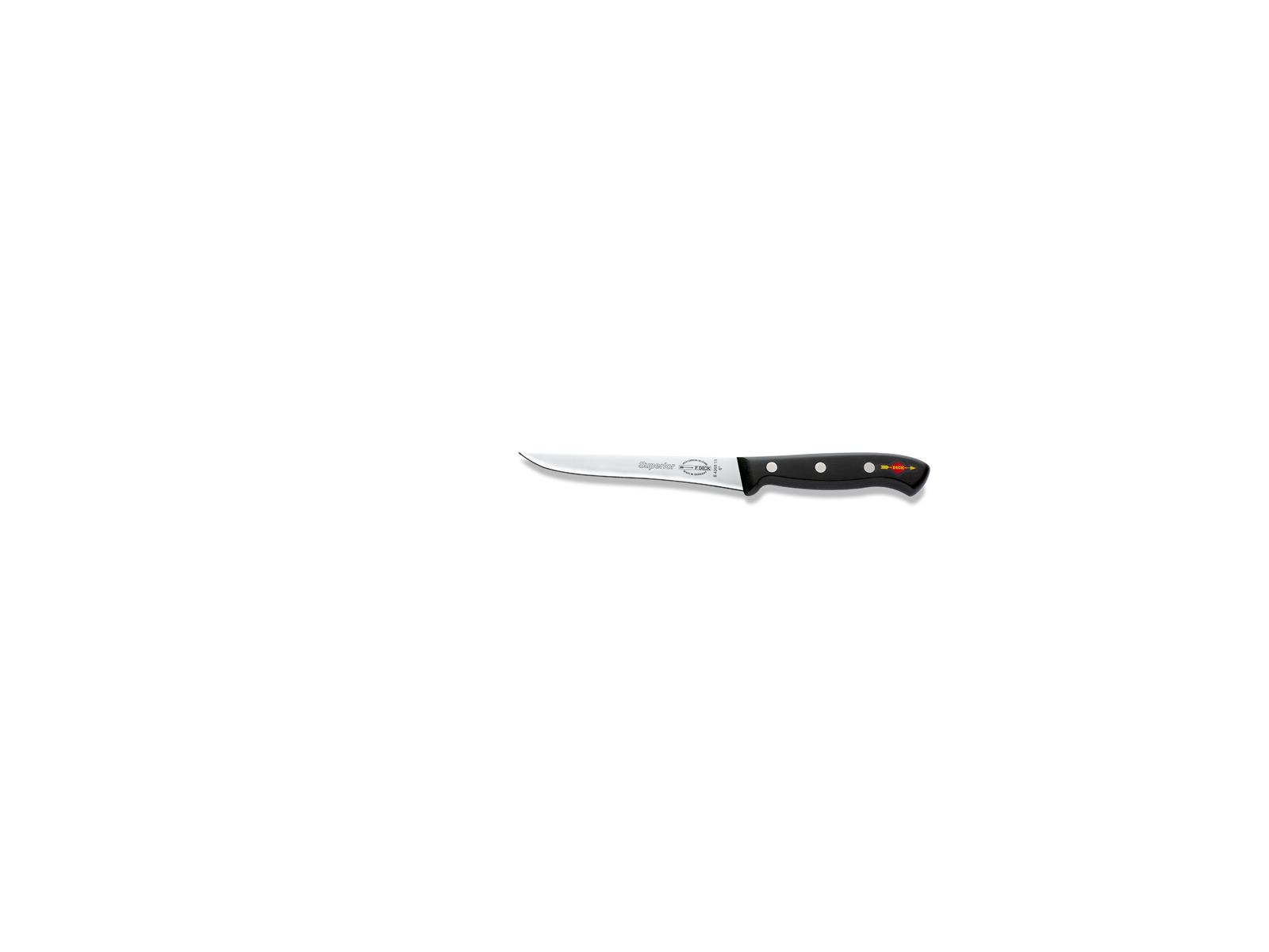 F. Dick Superior urbeningskniv med 15 cm blad är designad för professionellt urbeningsarbete. Med sitt skarpa, smala blad i rostfritt X50CrMoV15 plått stål ger den dig optimal kontroll och precision när du ska ta bort ben, senor och fett från köttstycken. Kniven balanserar perfekt mellan flexibilitet och stabilitet.