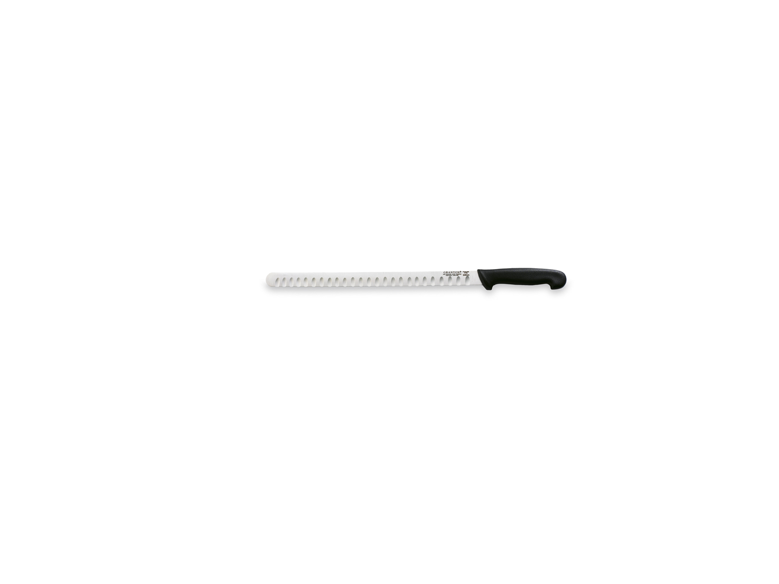 Det 36 cm långa bladet är utrustat med Grantons karakteristiska luftskär, som är små förskjutna fördjupningar längs klingan. Denna teknik minskar friktionen markant under skärning, vilket förhindrar att fisken fastnar på klingan. Resultatet blir rena, släta snitt utan att riva eller förstöra den delikata fisken. Bladet är tillverkat av förstklassigt plåthärdat stål med en hårdhet på 56 HRC, vilket ger en utmärkt skärpa och hållbarhet.
