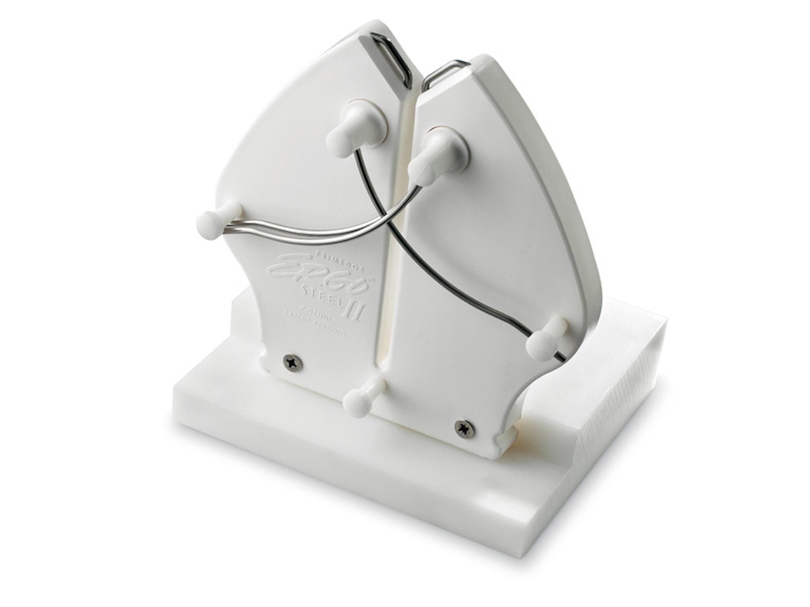 Denna hållare är specifikt designad för Primedge Ergo I och II knivslipare. Den är tillverkad av hållbart poly-material i vitt, vilket är lätt att rengöra och underhålla. Hållaren kan monteras på väggen eller placeras på bänkskivan, beroende på vad som passar bäst för ditt kök och dina arbetsrutiner.