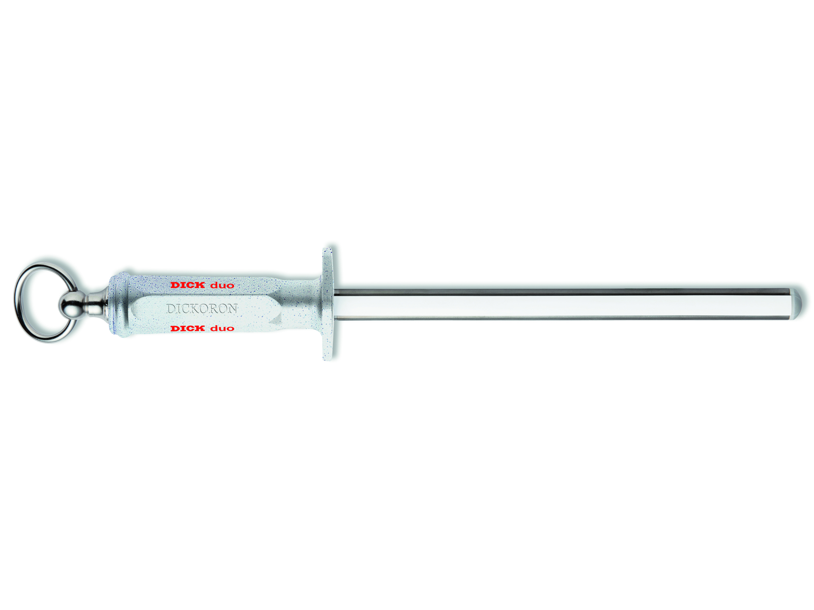 F. Dick Dickoron Duo sleifstål kombinerar diamant och keramik i ett professionellt verktyg för underhåll av knivar. Med en bladlängd på 25 cm ger det dig möjlighet att arbeta med både små och stora knivar. Den fyrkantiga formen säkerställer en stor kontaktyta, så att du kan hålla dina knivar skarpa med minimal ansträngning.