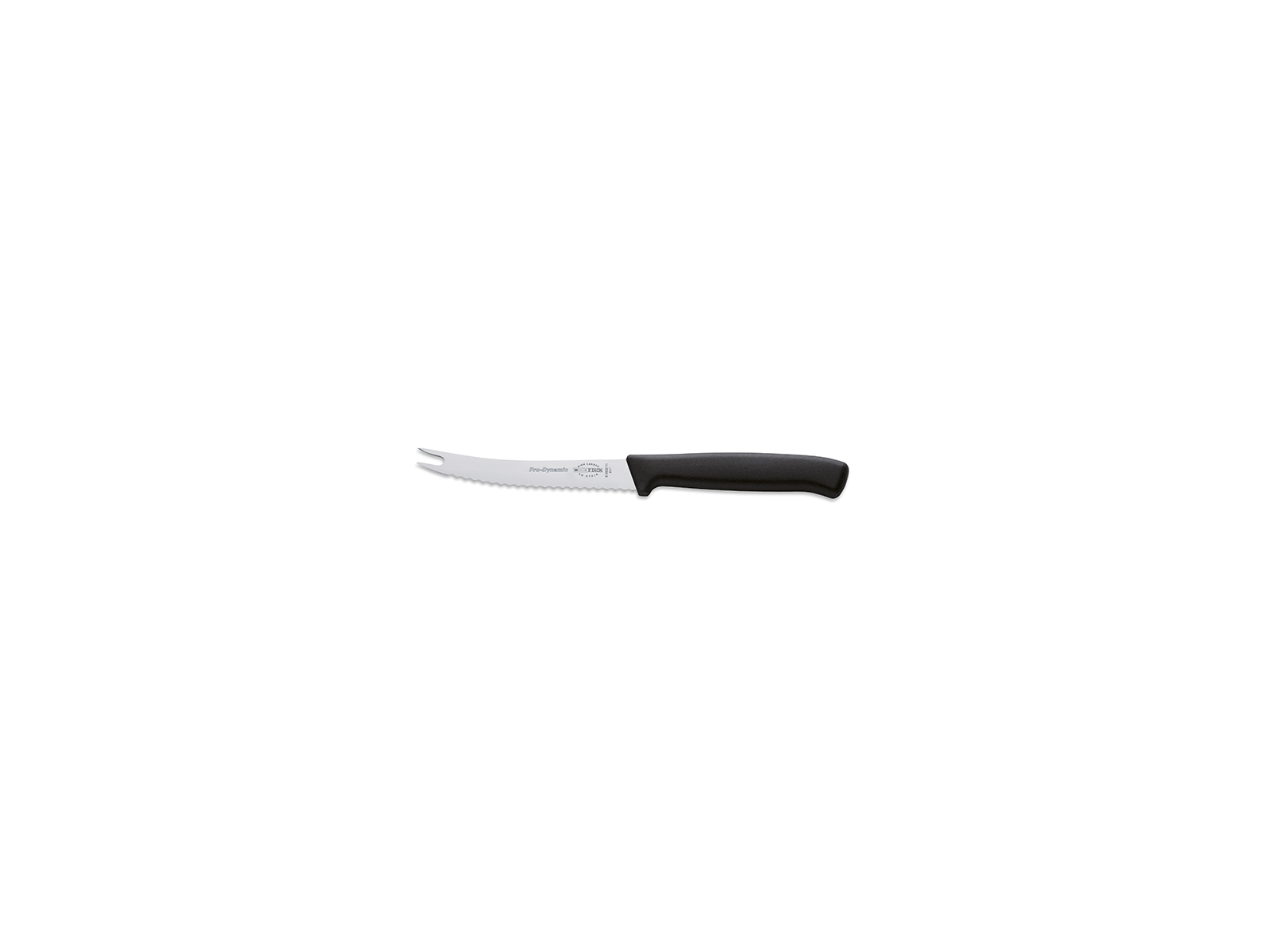 Tomatkniven från F. Dicks ProDynamic-serie förenar funktionalitet och kvalitet i en lätt och smidig kniv. Med sitt 11 cm sågtandade blad i rostfritt stål (X50CrMoV15) och två små tänder i spetsen möjliggör den att skära precisa skivor utan att mosa de mjuka råvarorna. Den ergonomiska konstruktionen med helgjutet plasthandtag säkerställer ett säkert grepp och hög hygien.