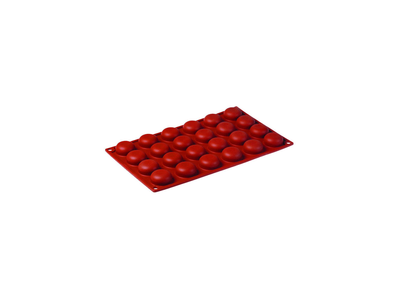 Denna röda silikonform från Pavonis Formaflex-serie ger dig möjlighet att skapa 24 identiska pomponer med precision och elegans. Med en praktisk storlek på 175 x 300 mm och individuella formar med en diameter på 34 mm och höjd på 16 mm får du enhetliga resultat för både söta och salta serveringar. Idealisk för professionella kök, catering och passionerade hemmakockar som vill imponera med detaljerade anrättningar.