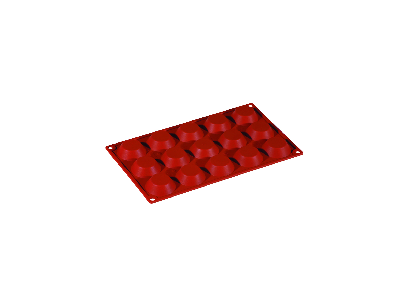 Pavoni Formaflex silikonbakform i 1/3 GN-storlek gör det möjligt för dig att skapa 15 enhetliga tartletter med en diameter på 50 mm. Den röda silikonbakformen tål temperaturer från -40°C till +280°C, vilket gör den lämplig för både bakning, frysning och andra tillagningsmetoder. Med måtten 175 x 300 mm passar formen perfekt in i standardiserade professionella kökssystem.