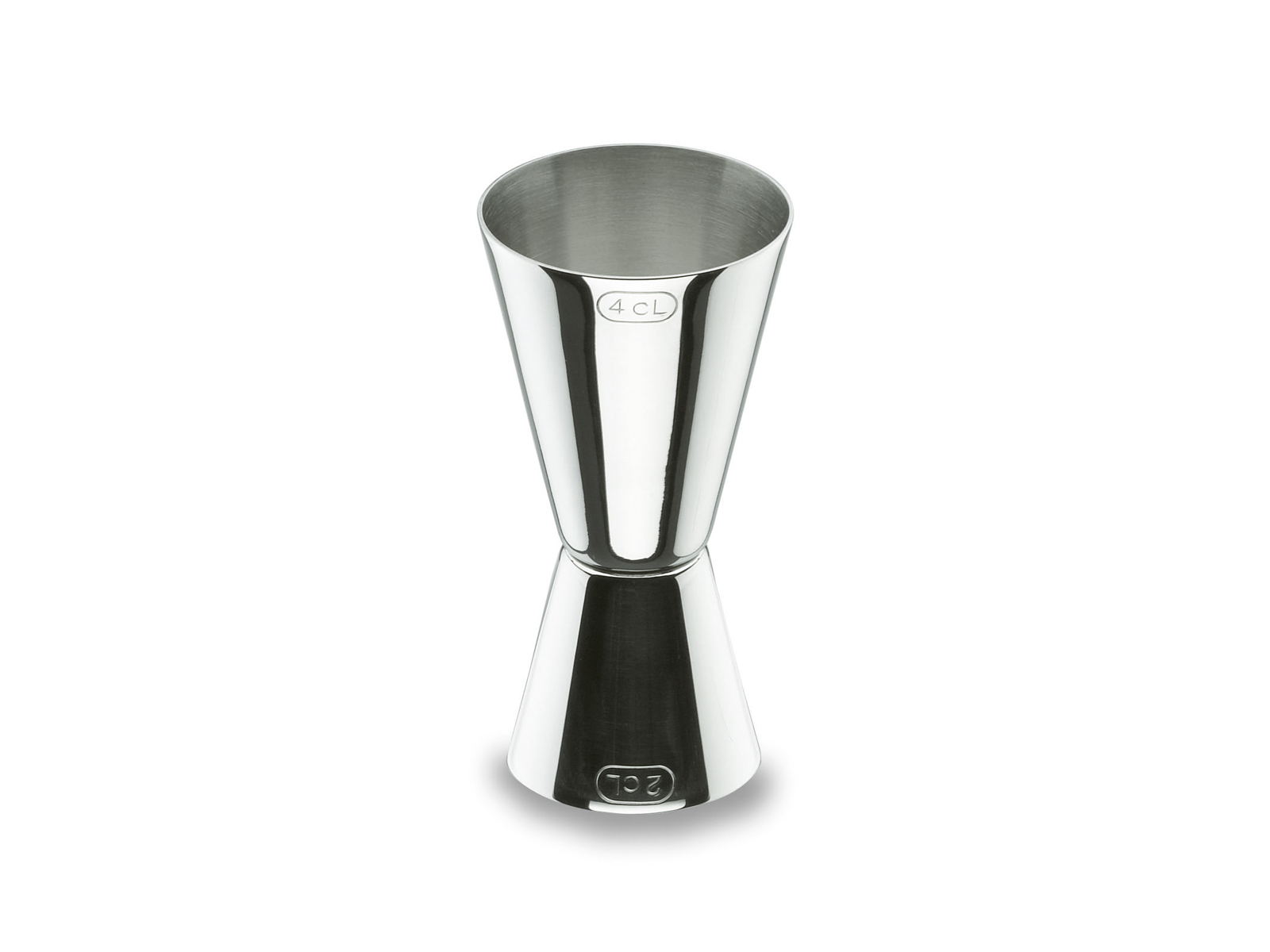Måttbägaren har en klassisk design med två olika mät sidor - en för 2 cl och en för 4 cl. Den rostfria stålkonstruktionen säkerställer god hållbarhet och ett tidlöst utseende som passar in i alla professionella eller privata miljöer. Den låga vikten på endast 6 gram gör den bekväm att arbeta med, även vid upprepad användning under längre tid.