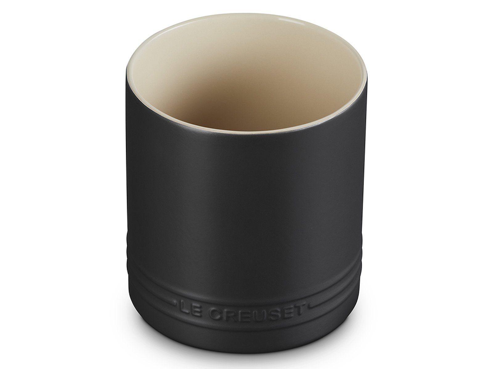Le Creuset Signature redskapskruka i matt svart är tillverkad av hållbar, glaserad stengods med en kapacitet på 1,1 liter. Med sin tidlösa estetik och praktiska funktion ger den dig en elegant förvaringslösning för dina viktigaste köksredskap, samtidigt som den tillför ett designlyft till köksbänken.
