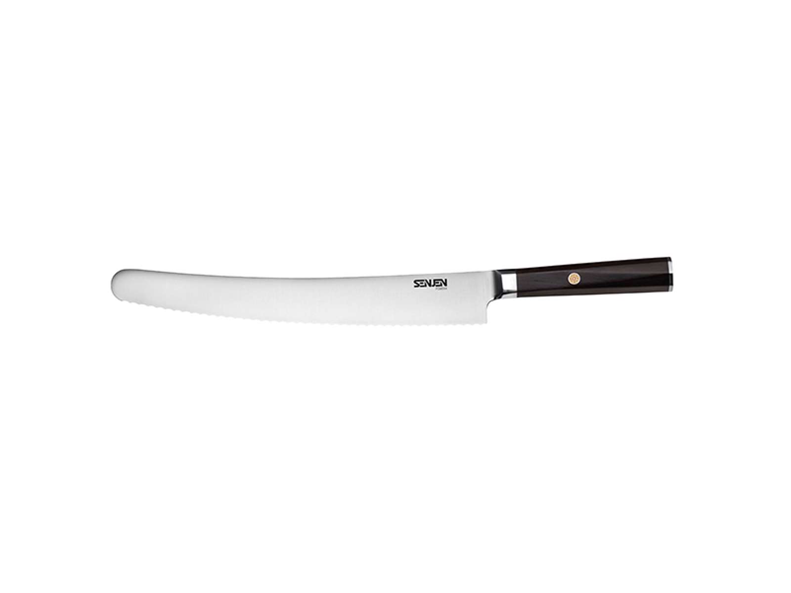 Senjen Powder Universalkniv med 260 mm bladlängd är ett professionellt köksverktyg med vågblad som ger dig exakt kontroll vid tillagning av både bröd och ingredienser med hård, slät eller seg yta. Kniven är tillverkad av HAP40-pulverstål i 3 lager, vilket säkerställer en extraordinär skärpa och hållbarhet med en hårdhet på hela 62 HRC.