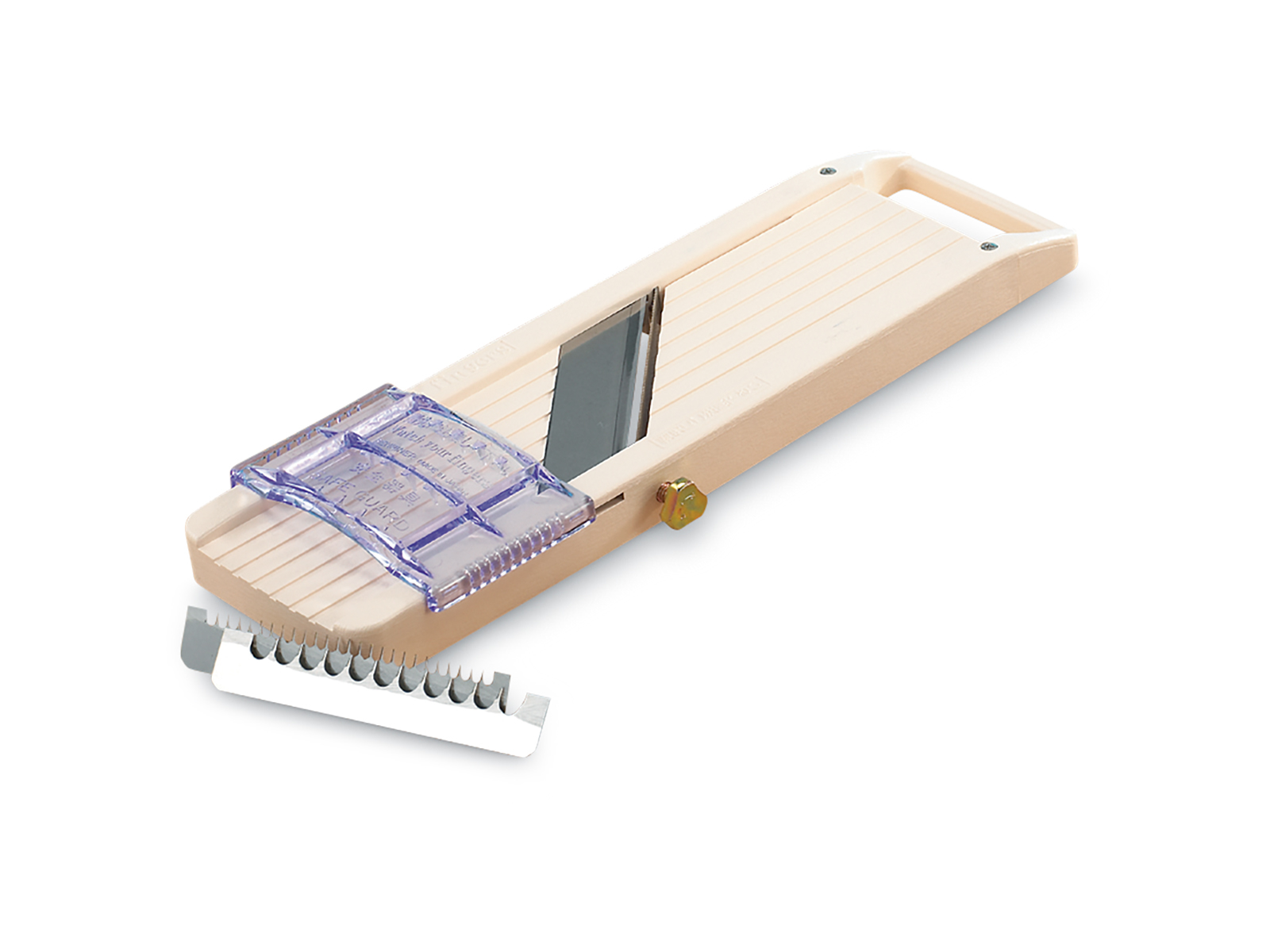 Mandolinen mäter 315 mm i längd och 65 mm i bredd med en höjd på 30 mm. Den väger endast 290 gram, vilket gör den lätt att hantera. ABS-plasten är värmebeständig upp till 70°C, vilket säkerställer hållbarhet vid daglig användning. För din säkerhet inkluderar mandolinen en säkerhetsmekanism som skyddar fingrarna under användning - en viktig funktion när man arbetar med vassa blad.